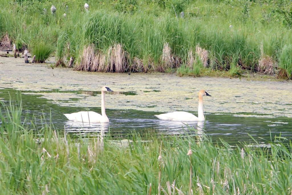 On Saturday, we hit the Moss Lake Trail, a peaceful 14 km loop through boreal forest and wetlands. It didn’t take long before we were rewarded with a pair of trumpeter swans gliding gracefully across the water. These incredible birds were reintroduced to the park back in 1987, and it’s amazing to think we might have seen descendants of that early effort. There’s something pretty special about watching them in a place where conservation success is written right on the landscape.