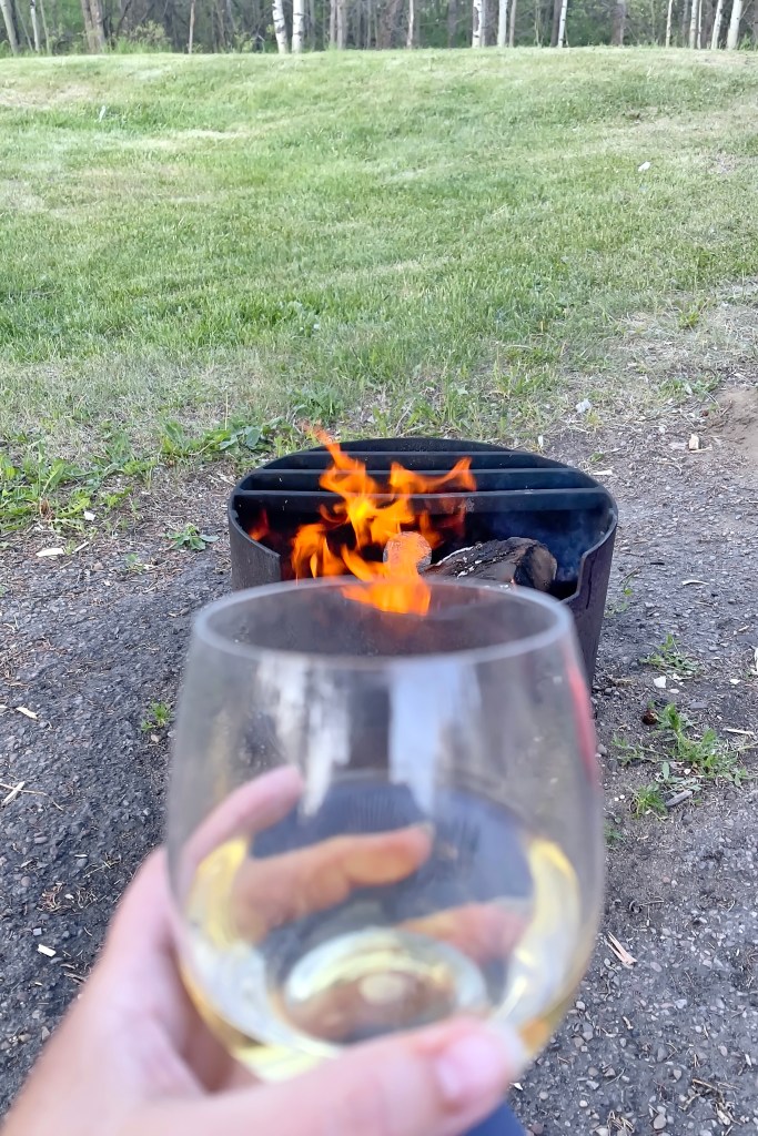 After we finished up—with just a little complaining from me about the length of the trail—we made our way back to Benny, tired in the best way. We curled up for the late afternoon with a glass of wine from Off the Grid Winery, one of our favourites from our Okanagan winery trip. Sipping that familiar flavour while surrounded by the hush of the forest felt like the perfect full-circle moment.