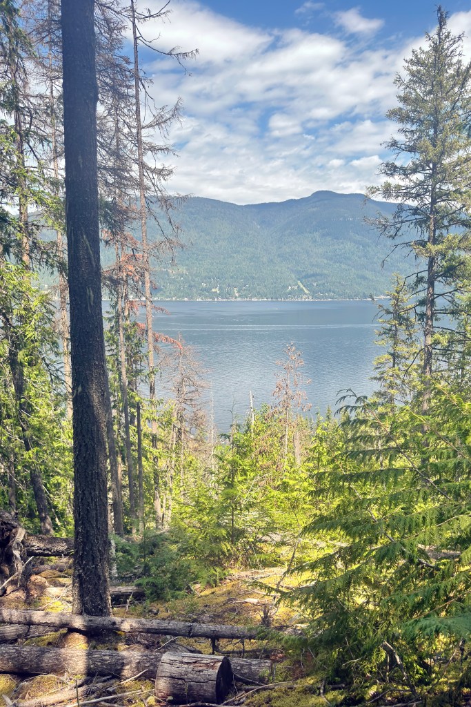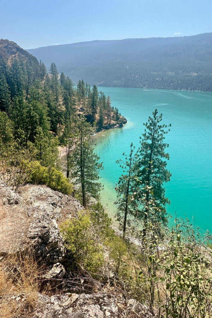 Although most of our adventures were centered around Salmon Arm and Shuswap Lake, we took a day trip south to Vernon to visit Juniper Bay Beach, tucked along the eastern shore of Kalamalka Lake. Smaller and more secluded than other beaches, it felt like a peaceful escape. The water shimmered in the lake’s signature turquoise hues, and the surrounding rocky cliffs created a dramatic and beautiful setting. We brought a picnic, swam, read, and simply soaked in the Okanagan sunshine. Before settling in at the beach, we hiked the Rattlesnake Point Trail – a short but rewarding route that winds through the forest and along a narrow peninsula to an open lookout. The viewpoint at the end treated us to sweeping views of Kalamalka Lake from both sides. It was one of those moments that makes you pause and fully appreciate the beauty around you.