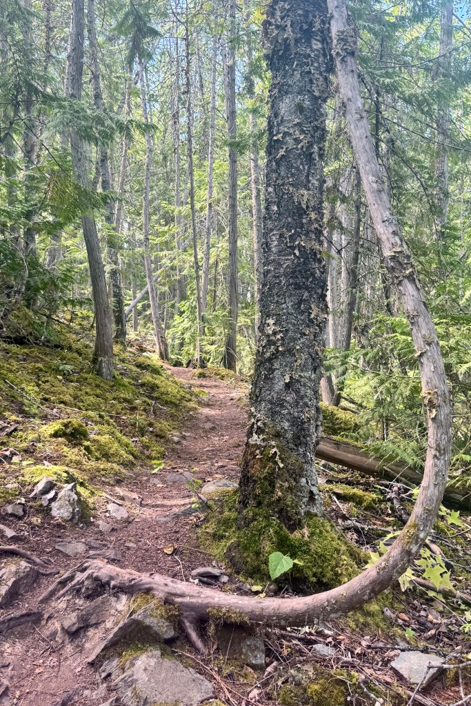 One of the first we visited was Sicamous Creek Falls, just a short drive from town. The trail was an easy walk, winding through mossy forest and down a staircase to the side of the creek, with the sound of rushing water building as we approached. The falls themselves were tucked into a shady ravine, cascading down layered rock in a powerful, misty rush. It was peaceful, cool, and felt like a hidden gem, especially on a hot day.