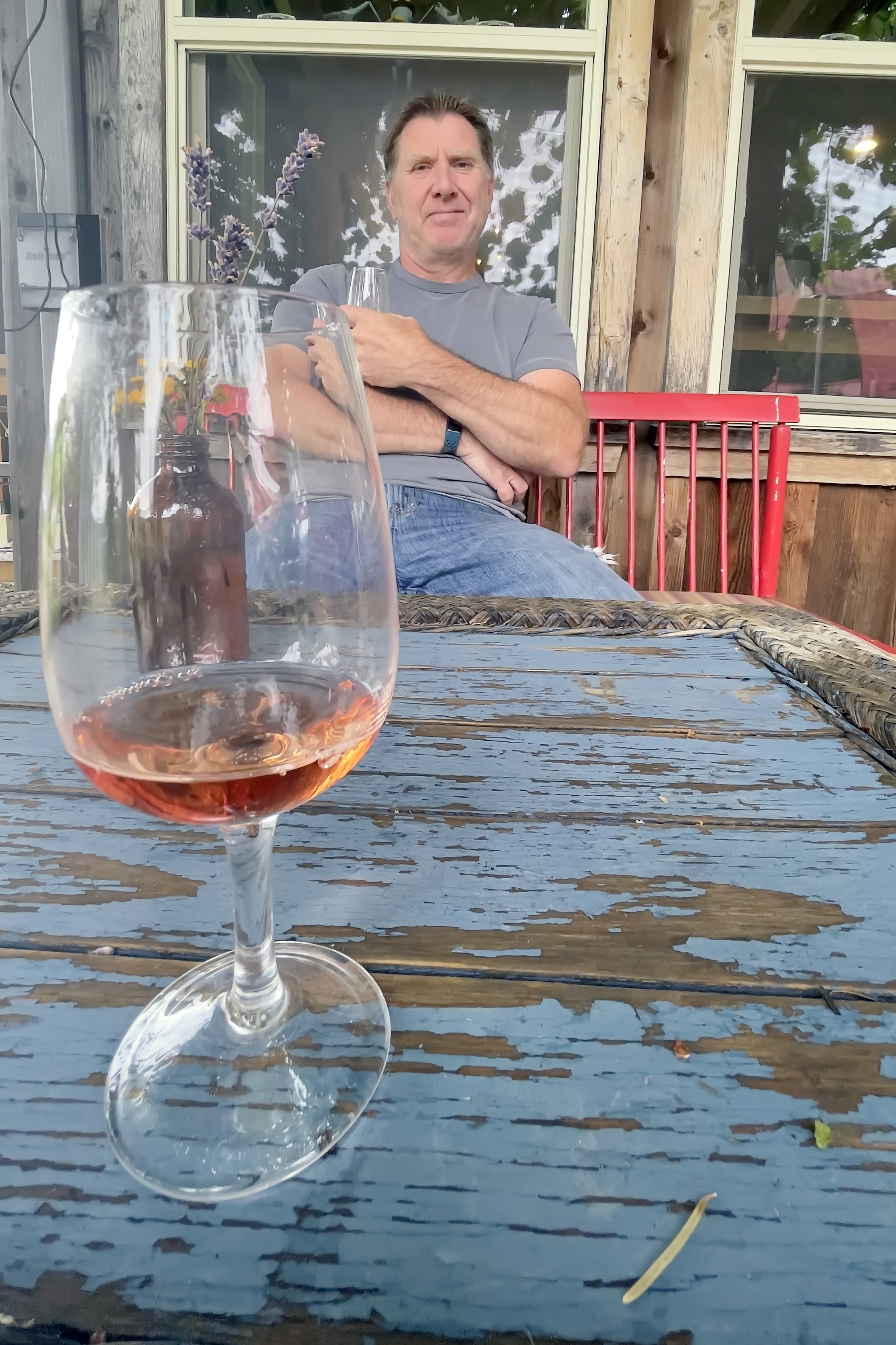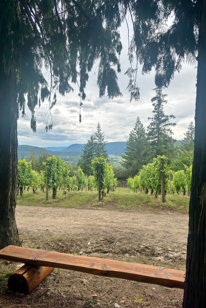 On a cooler and cloudier day, we then visited two more vineyards, each offering something unique. Larch Hills Winery was the first on our list – and easily the most scenic. Set high in the hills south of town, the drive alone was worth the visit, with sweeping views over the valley and Shuswap Lake. Larch Hills specializes in cool-climate wines, and their Siegerrebe and Ortega were standout favorites. The tasting was relaxed and friendly, and we walked away with a few bottles to enjoy over sunset dinners on the deck.