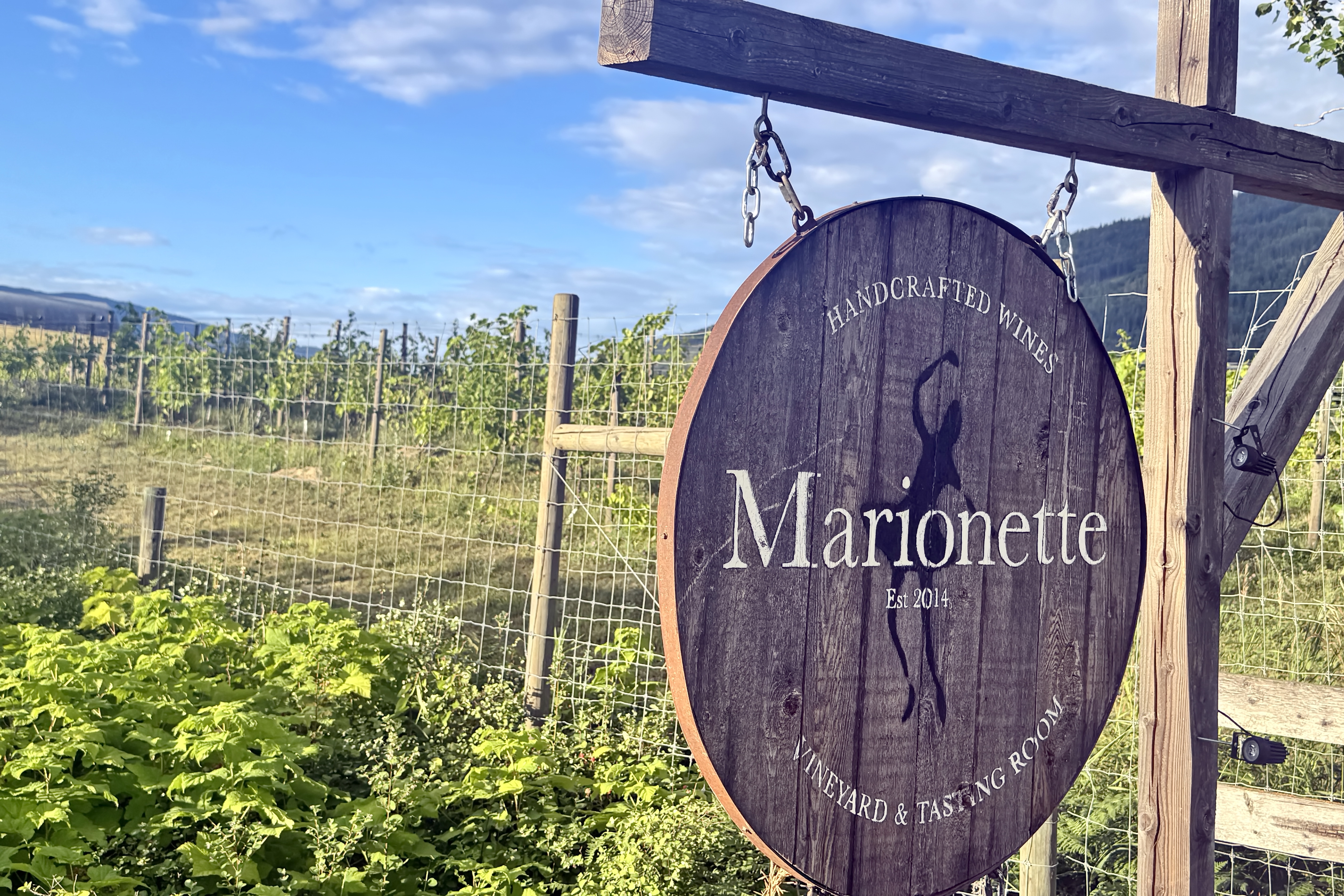 Next up was Marionette Winery, just minutes from downtown Salmon Arm but with a laid-back countryside feel. Their patio area was perfect for sipping and enjoying the view, and we loved their Gruner and Pinot Noir – beautifully crafted and not too fussy. The vibe was casual and artistic, with a touch of bohemian charm that made us want to stay all afternoon.
