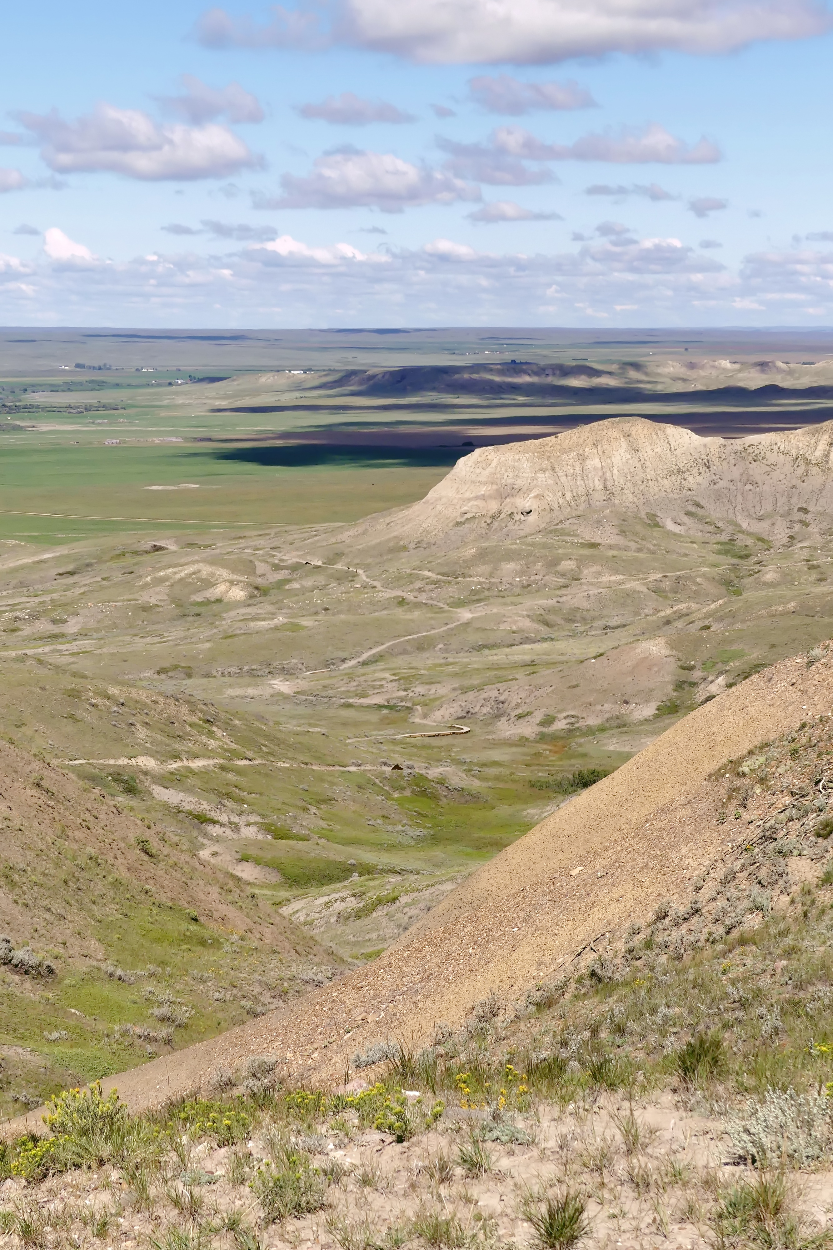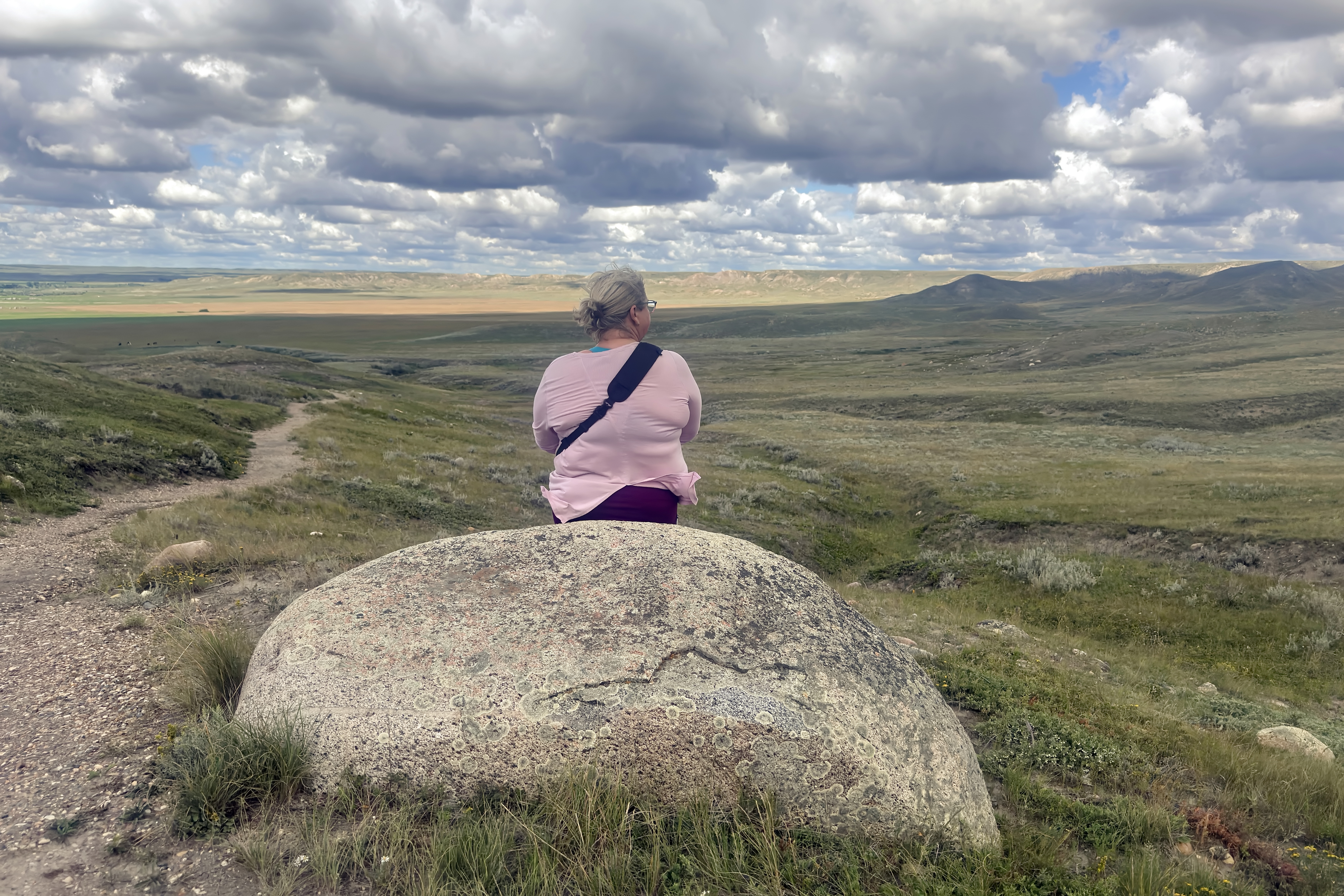 The West Block offers several other trails that showcase just how diverse this prairie landscape can be. Two of the most memorable for us were the 70 Mile Butte Trail and the Eagle Butte Trail, loops that join together to make one longer hike. Both take you up to incredible viewpoints where the prairie stretches endlessly in every direction, the rolling grasslands broken only by coulees and river valleys. Standing at the top, with the wind tugging at your hair and no sign of human development in sight, it feels like you’ve stepped back in time.