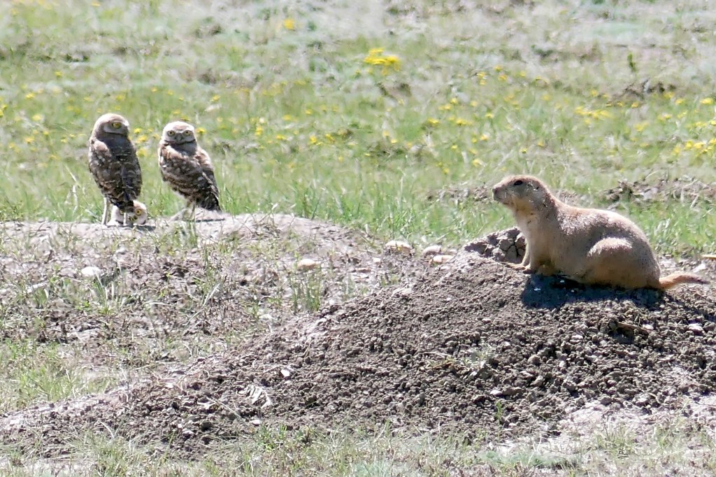 Not all the heads poking up from the burrows were prairie dogs though. On some of the mounds, we spotted burrowing owls, standing guard on their spindly long legs and scanning the horizon with their beady eyes. These small, ground-dwelling owls often nest in abandoned burrows, and due to this behaviour they are also affectionately known as ‘borrowing owls’.