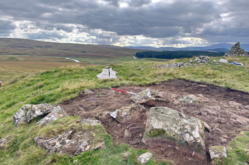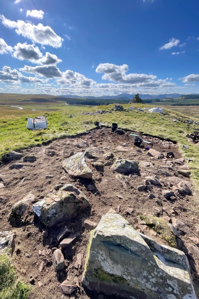 At this site, there is a Kerb Cairn, which has been reduced to a low grassy circular platform at the base of the crag, and remnants of an Iron Age hill fort on a rocky ridge, which is where we would be excavating.