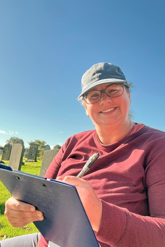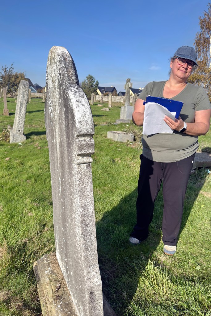 Upon arrival at the cemetery, we learned about the Mytum form, a standardized coding document for systematically recording the archaeological and historical details of memorial monuments in cemeteries and burial grounds.