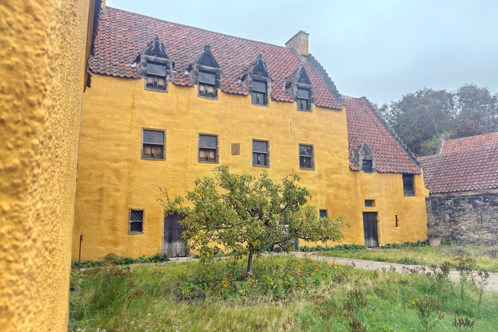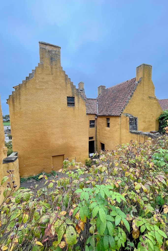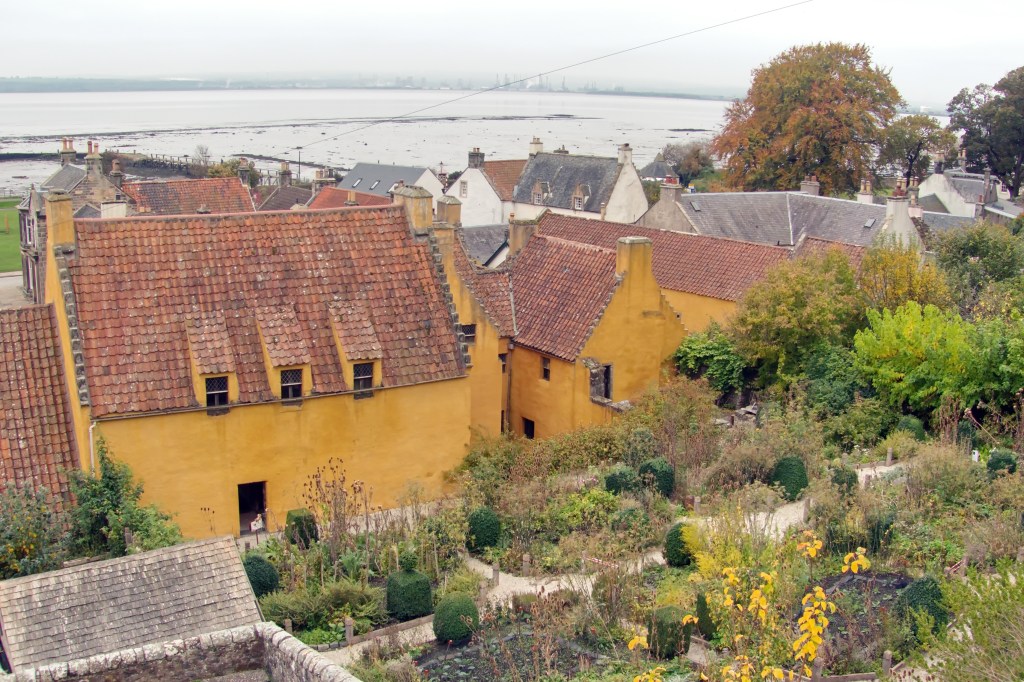 Behind the house, the seventeenth-century gardens have been lovingly recreated by the National Trust for Scotland. Complete with raised beds, a covered walkway, and crushed-shell paths, they are planted with herbs, vegetables, and fruit trees typical of the early 1600s. A small, carved wooden folly, inscribed with the initials GB offers magnificent views across the village and over the shimmering Firth of Forth.