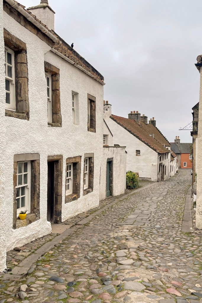 Modern visitors might recognize Culross for another reason, Outlander fans will know it as the fictional village of Cranesmuir, home to the mysterious Geillis Duncan. The Mercat Cross and Palace courtyard appear throughout the series, and walking here truly feels like stepping into a scene with Claire and Jamie. Even if you’ve never seen the show, there’s a cinematic quality to Culross, the golden walls glowing in soft Scottish light and the sense that you could turn a corner and find yourself in another century entirely.