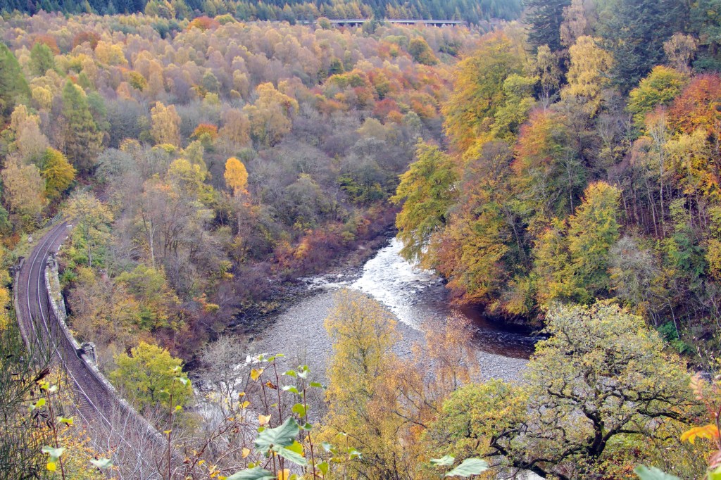 History lovers, this one’s for you—though honestly, anyone with a pulse will be blown away by Killiecrankie Pass. This narrow, dramatic gorge delivers some of the most jaw-dropping autumn colours we’ve seen anywhere in Scotland. With the A9 skimming high above and the massive railway viaduct alongside the River Garry below, you immediately sense how vital this route has been for centuries, funnelling through the divide between the Highlands and Lowlands.