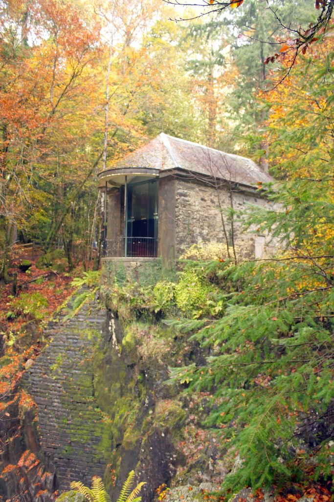 For a better look, we stepped into Ossian’s Hall—an 18th-century folly that looks like a mini temple tucked into the woods. It once had mirrors inside to make the water appear like it was pouring from every direction. Today, you push open glass doors to a viewing platform that delivers the full drama of the falls right in front of you…nature’s theatre at its finest.