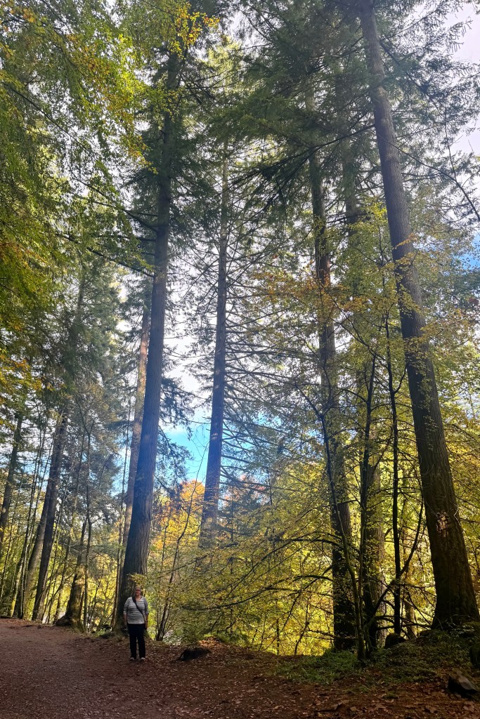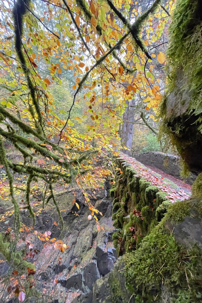 The Hermitage near Dunkeld made me feel like I’d stepped straight into a fantasy novel—and I swear the trees knew it. Towering Douglas firs surrounded us, their needles whispering overhead like they were swapping secrets about the strangers wandering below. And beneath our feet, a soft, rust-coloured carpet of leaves cushioned every step, debris from a recent storm.