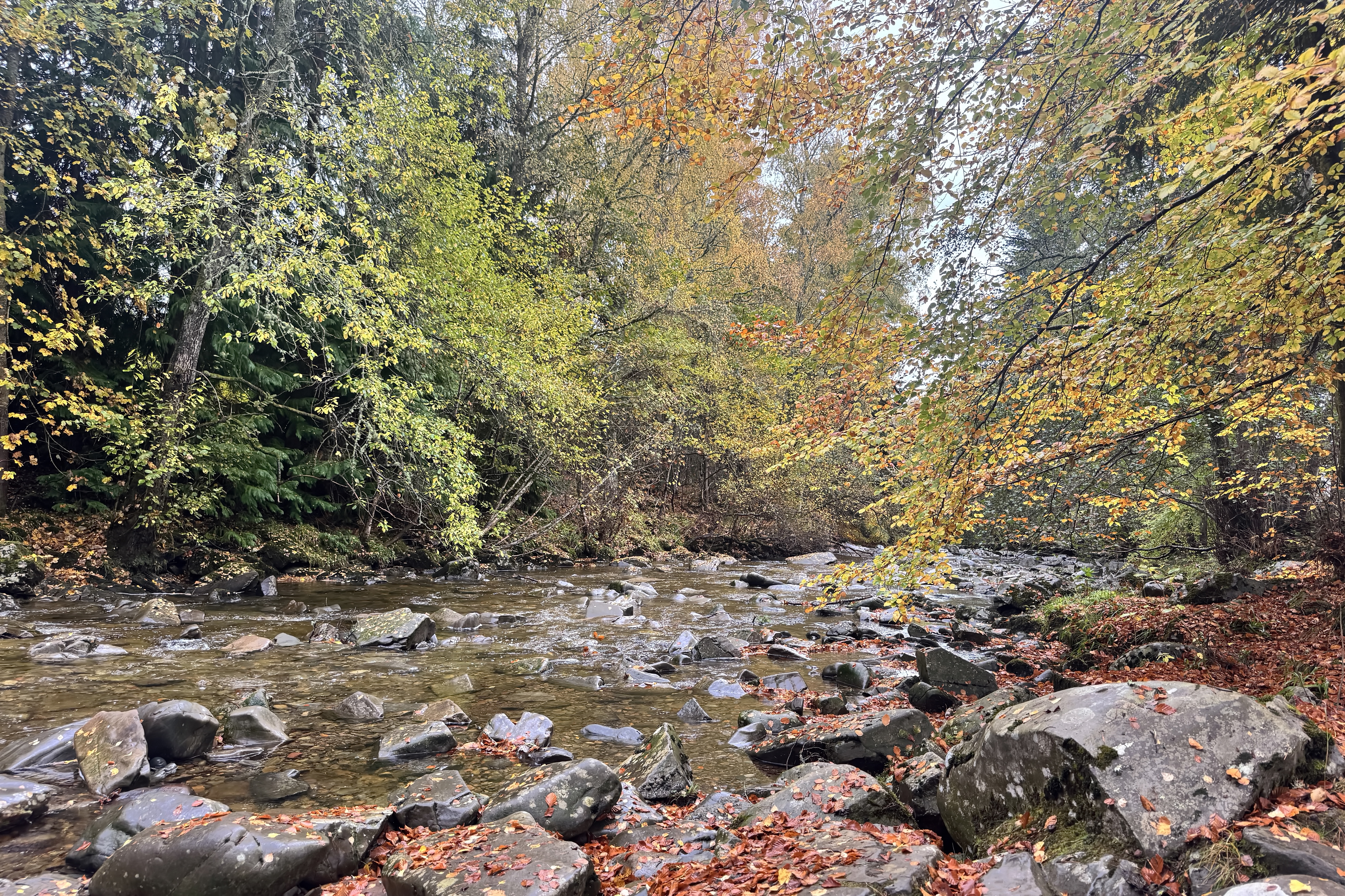 Downstream, the mood softens. The river slows, smoothing itself into quiet pools that mirror the fiery trees along the banks. Every reflection felt like a painted version of the landscape, slightly blurred and dreamlike.