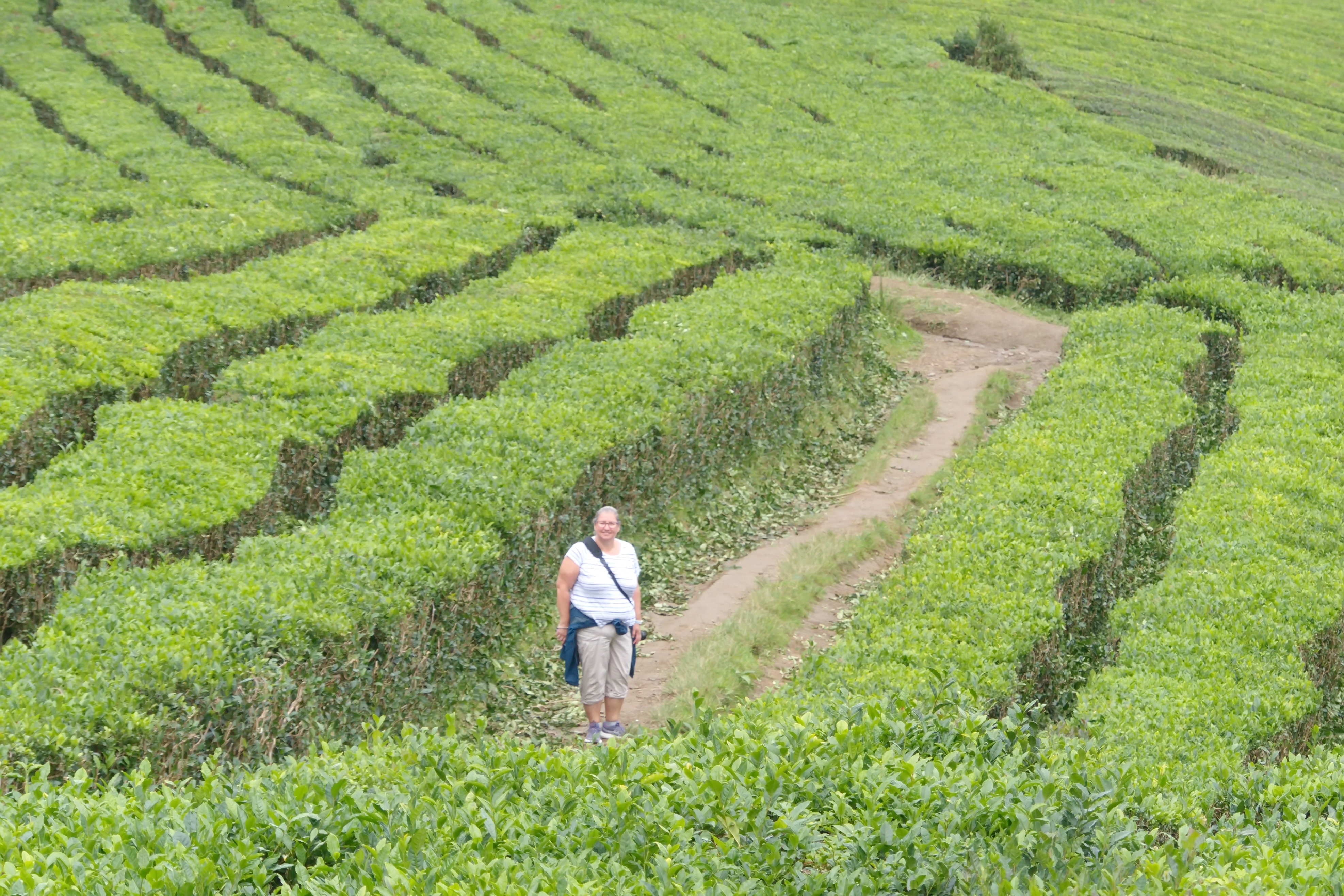 Walking here isn’t just scenic; it’s meditative. The paths weave between wave-like rows of bushes, offering countless spots to pause and take in the views. The earth beneath your feet alternates between soft soil and old volcanic rock, and as we meandered, rustling leaves became the soundtrack. It’s the kind of place where time slows—where you’ll catch yourself smiling just because the world is so quiet and beautiful.