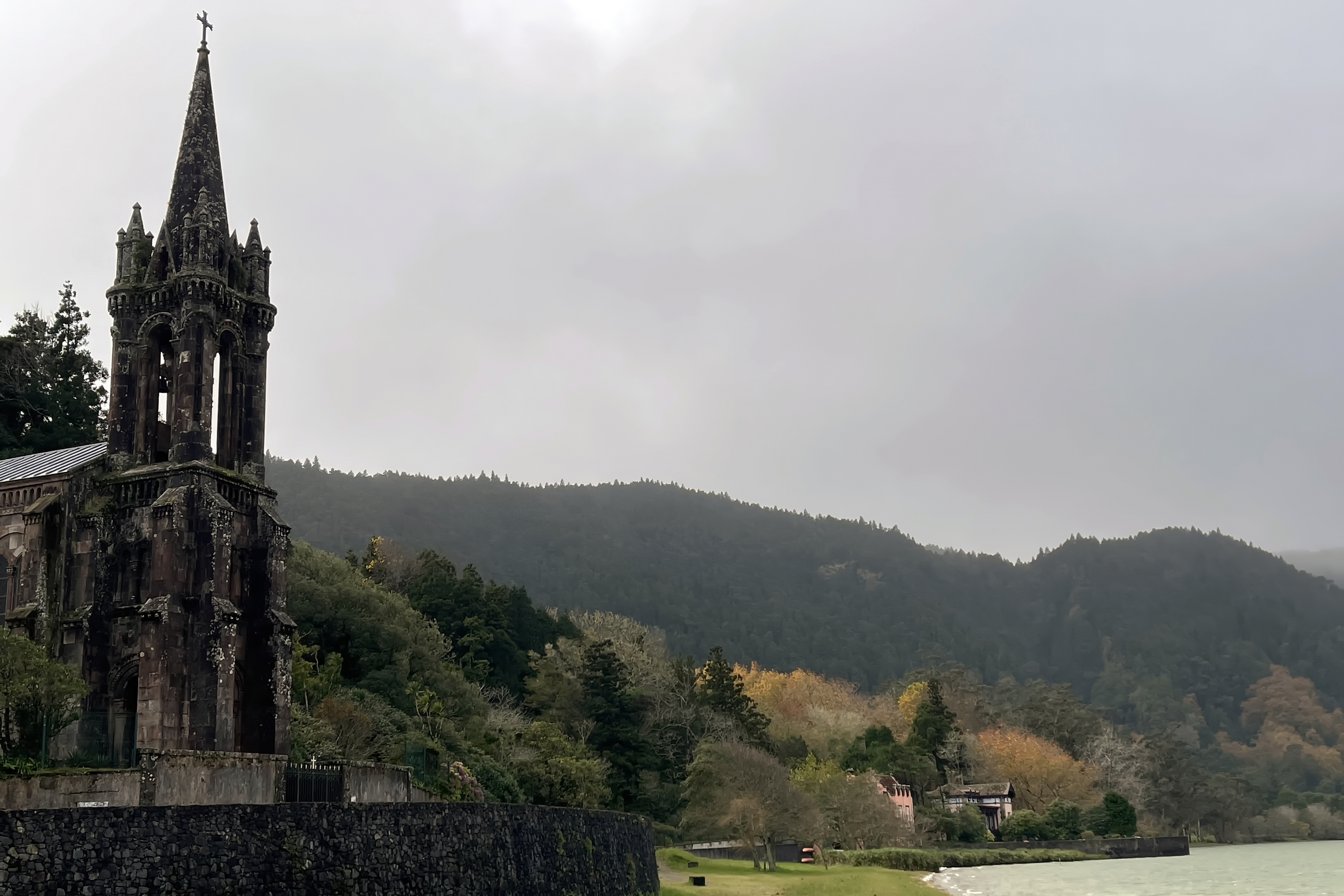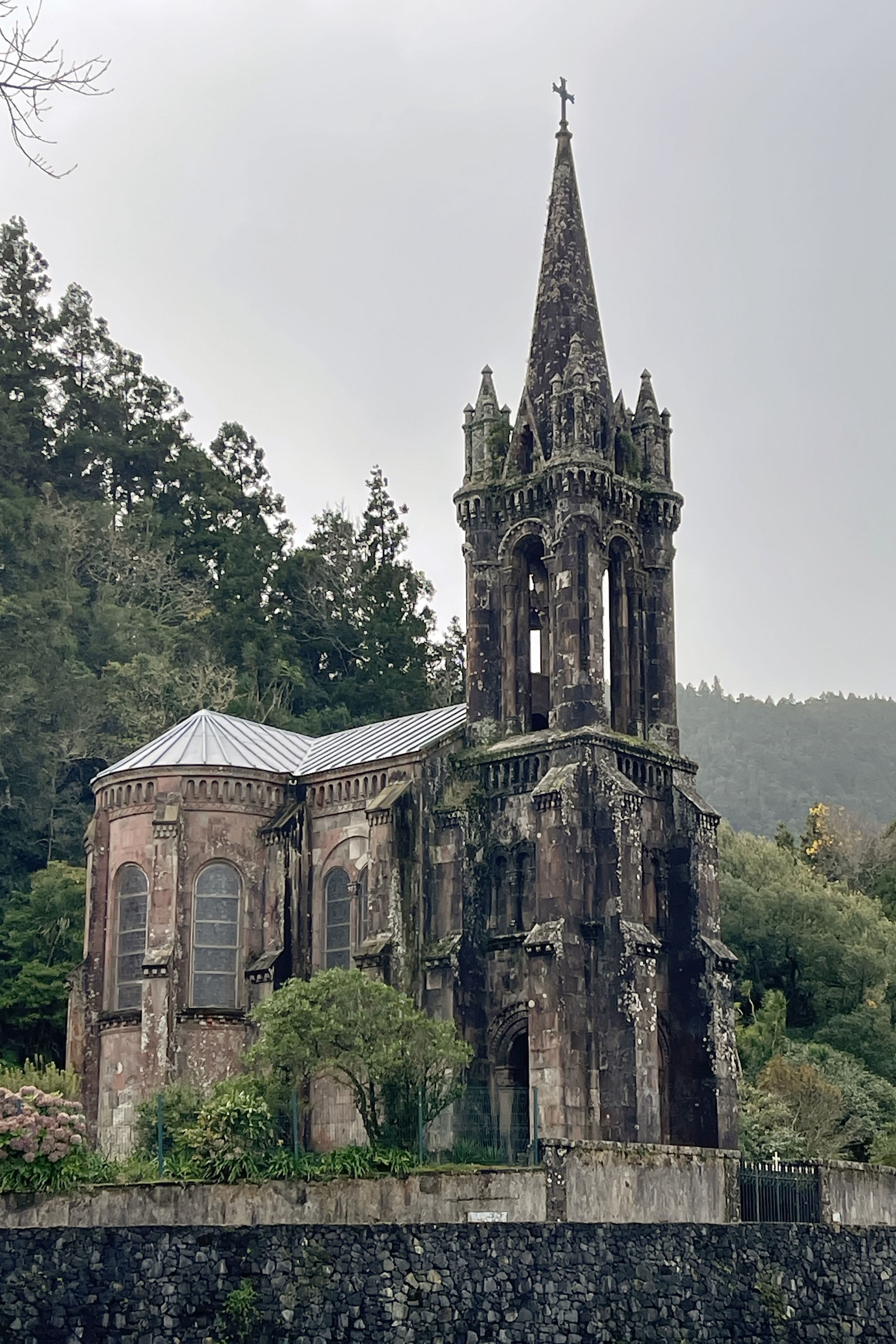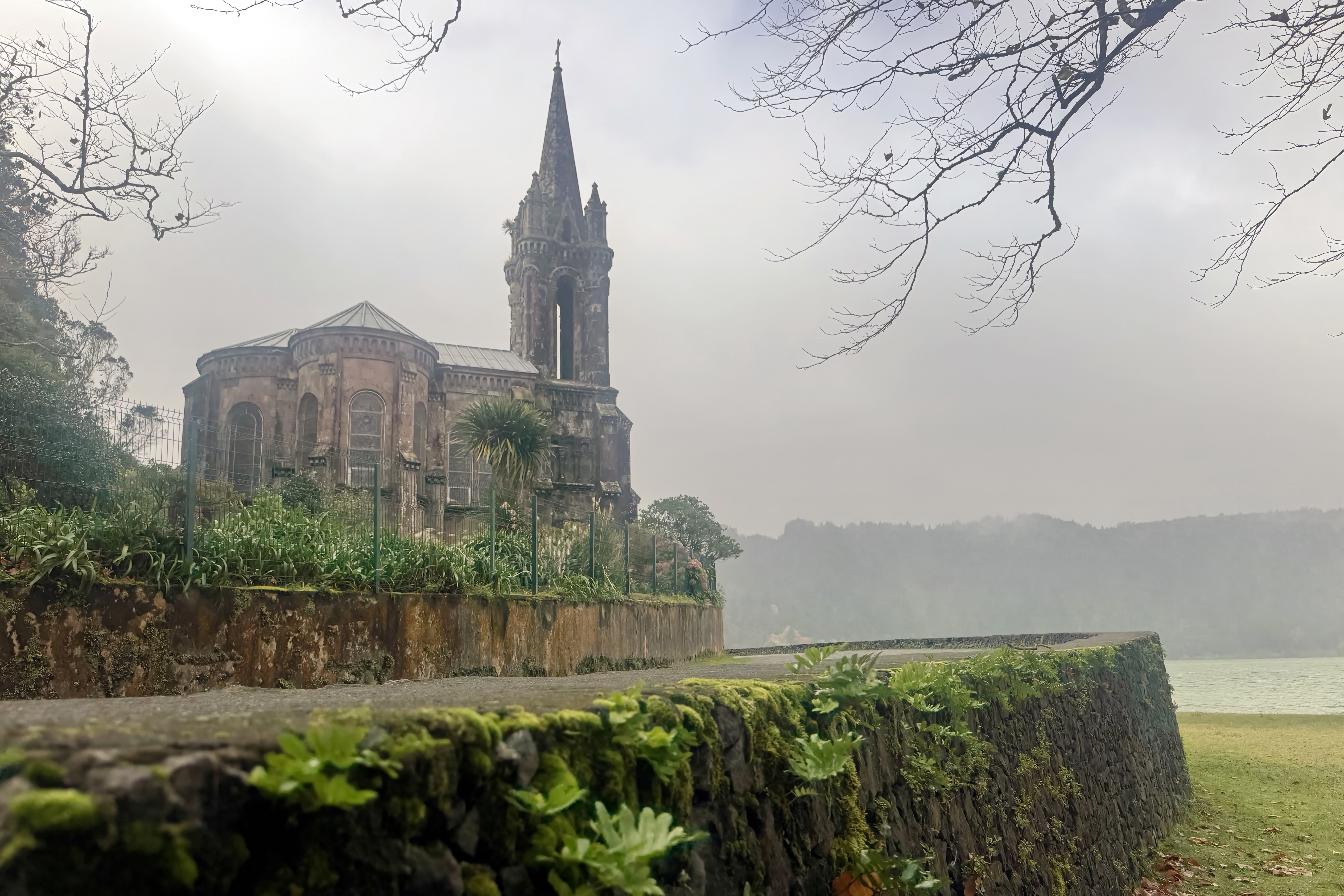 At the far end of the lake, a gentle walk along the shoreline brought us to the neo-Gothic Chapel of Nossa Senhora das Vitorias. Its elegant lines and pointed spire gave it an almost fairytale-like quality, but under brooding skies, the dark local stone took on a more dramatic, slightly foreboding presence. Standing there, it felt strikingly out of place and yet perfectly at home, a man-made monument set against the raw, untamed landscape.