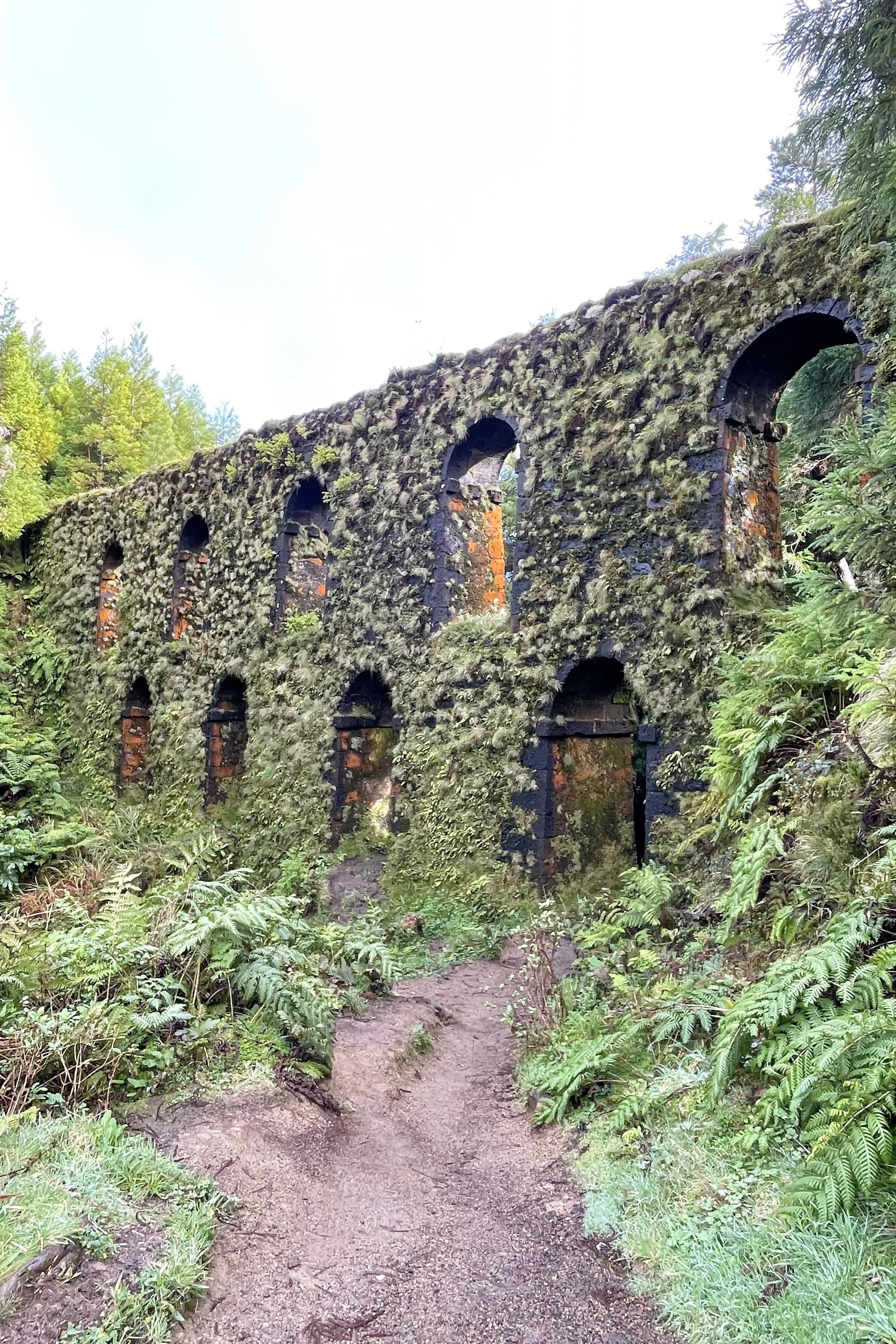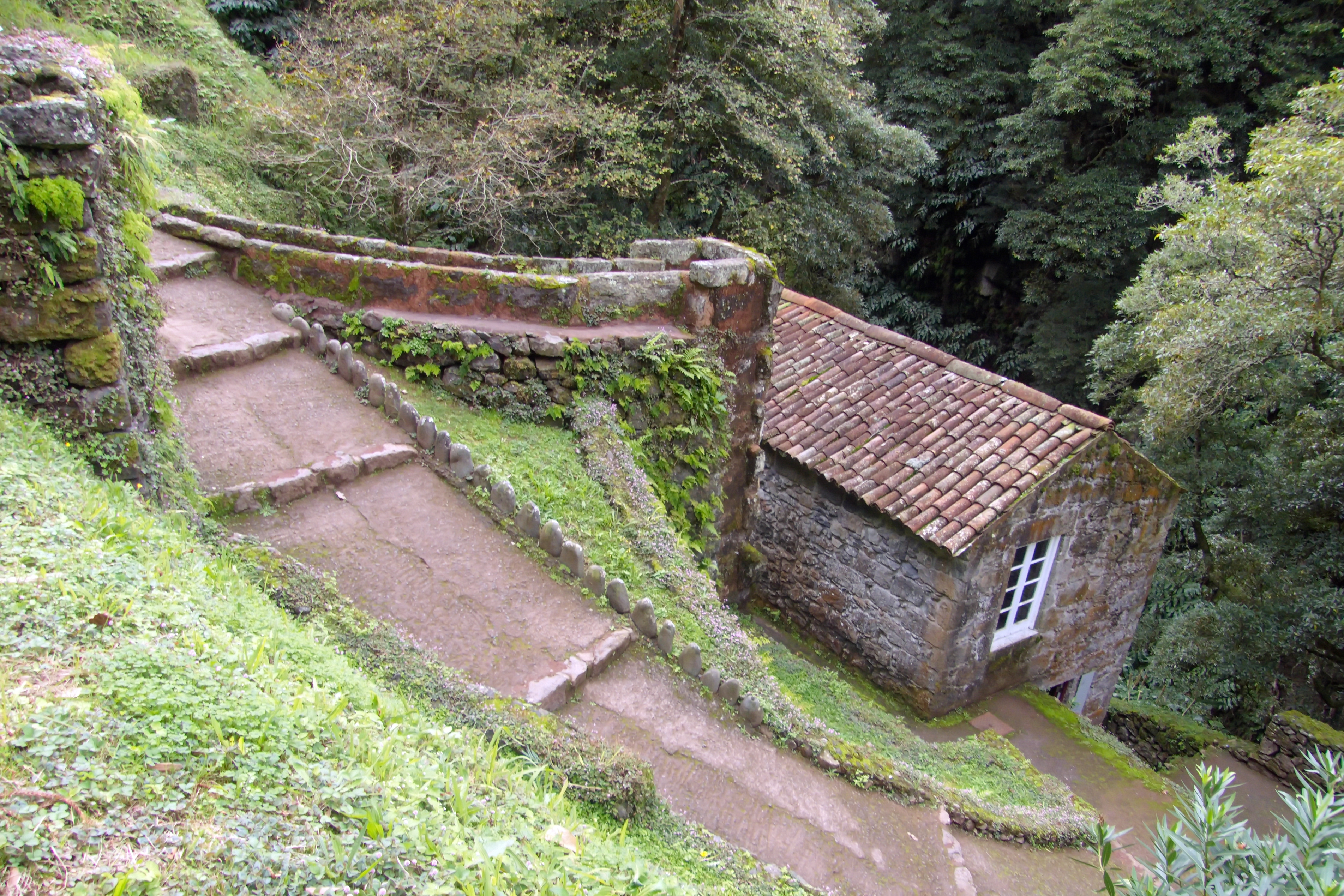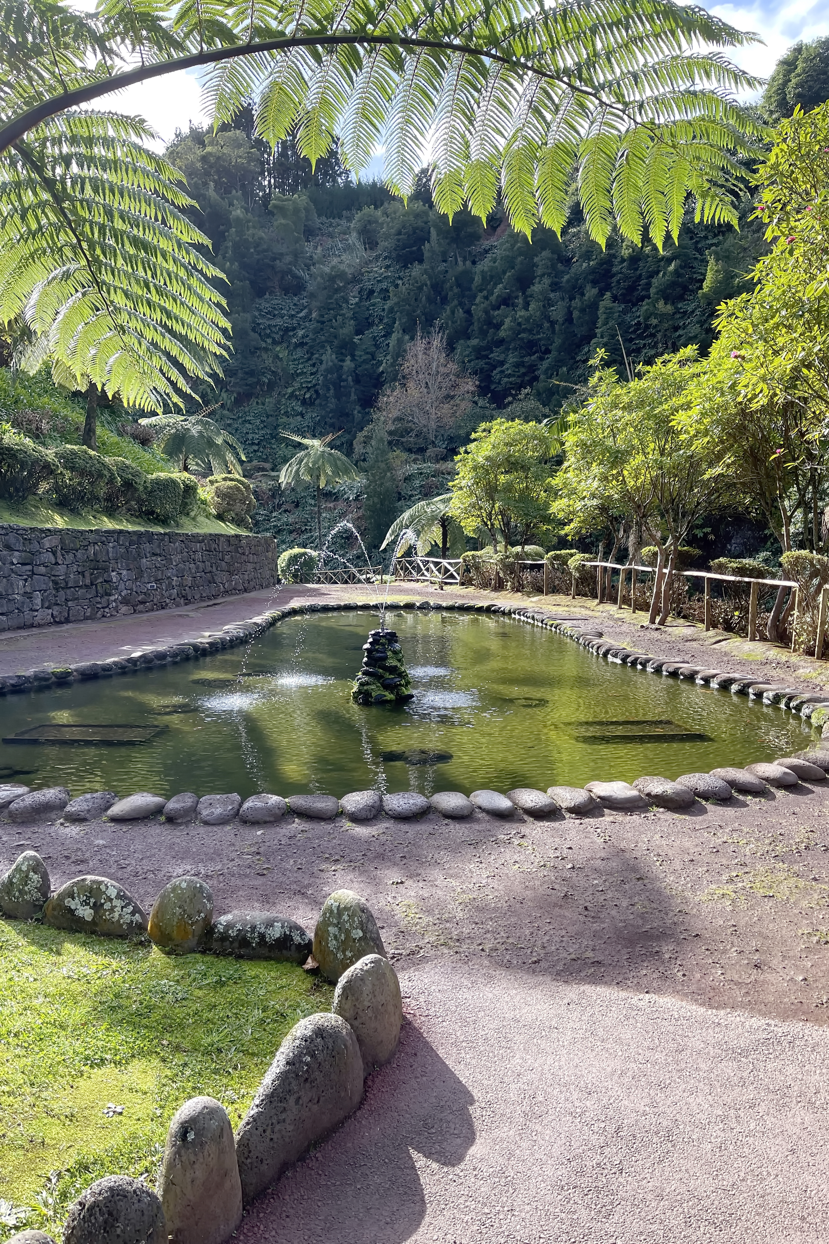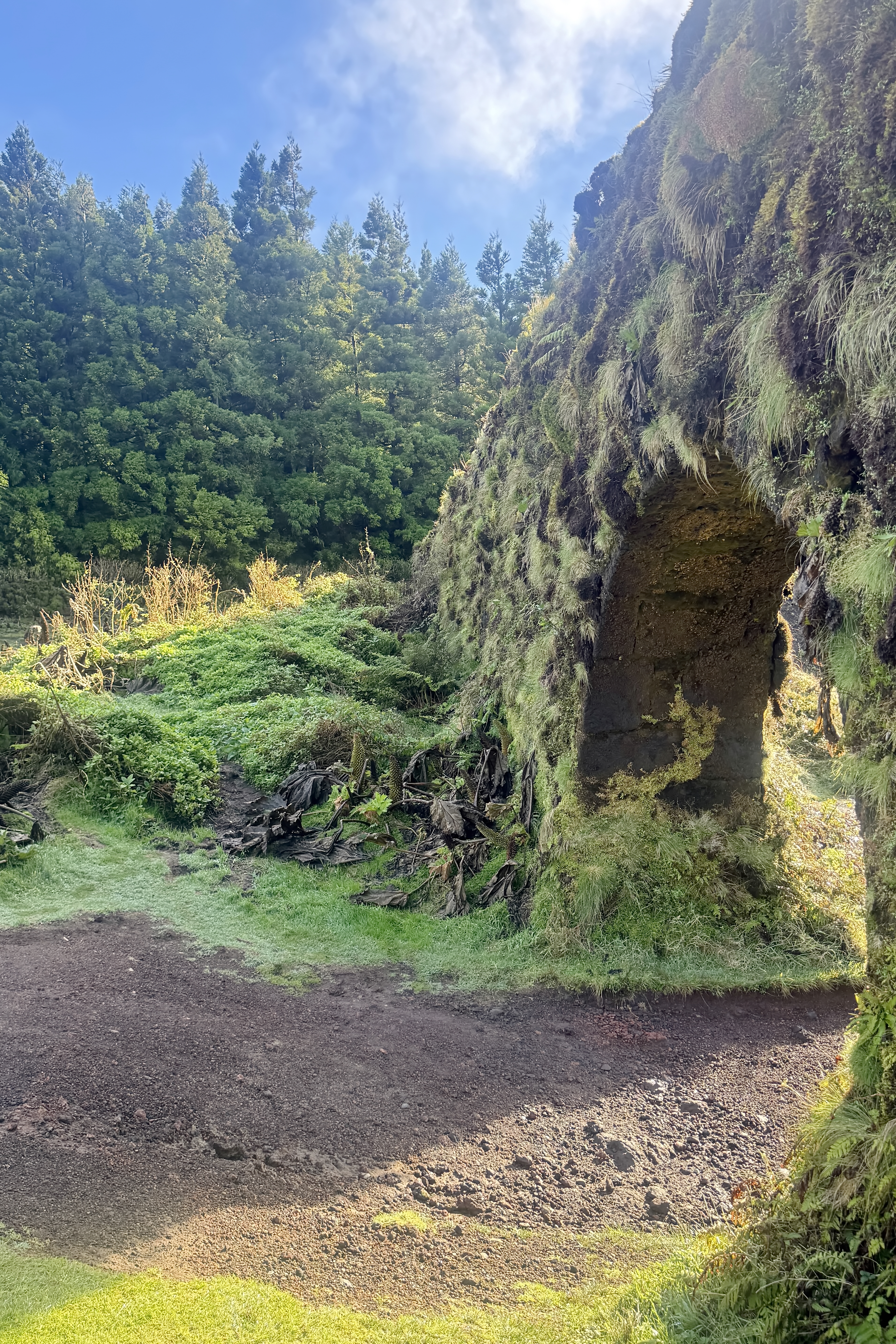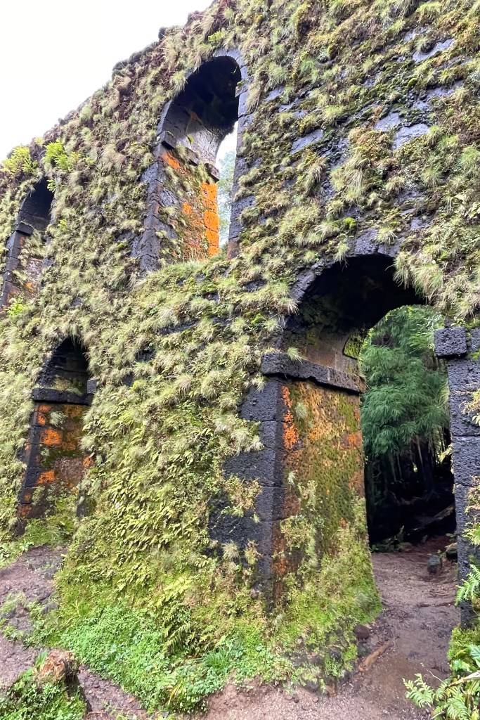 Scattered through the park are five 16th-century watermills, tucked into the hillside as though they had grown from the landscape itself. Seeing them up close, we were reminded that these sturdy stone buildings once powered the island’s grain and flour production and were at the heart of everyday life on Sao Miguel. Traces of that history are still everywhere—in the narrow channels that guided water from mill to mill, and in the grey and whitewashed walls, softened and rounded by centuries of weather. As we wandered between them, it was easy to picture the rhythm of another era—the steady clatter of machinery, voices drifting along the river, and the simple, dependable routines of a community shaped by this flowing water.