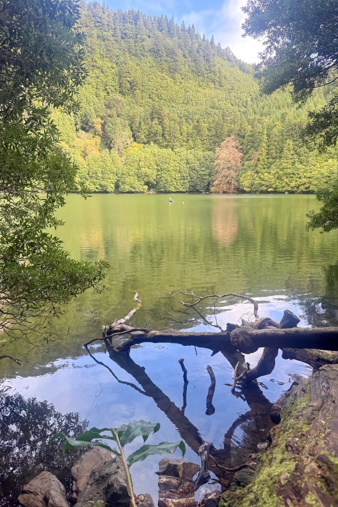 What stayed with us most was the quiet. Lago do Congro doesn’t demand attention; it simply invites you to breathe and slow your thoughts to the pace of the water. After the busy viewpoints and dramatic overlooks of the island, this felt like a gentle exhale. Some of Sao Miguel’s most beautiful places aren’t the ones you see first—they’re the ones you have to walk a little farther, and a little deeper, to find.