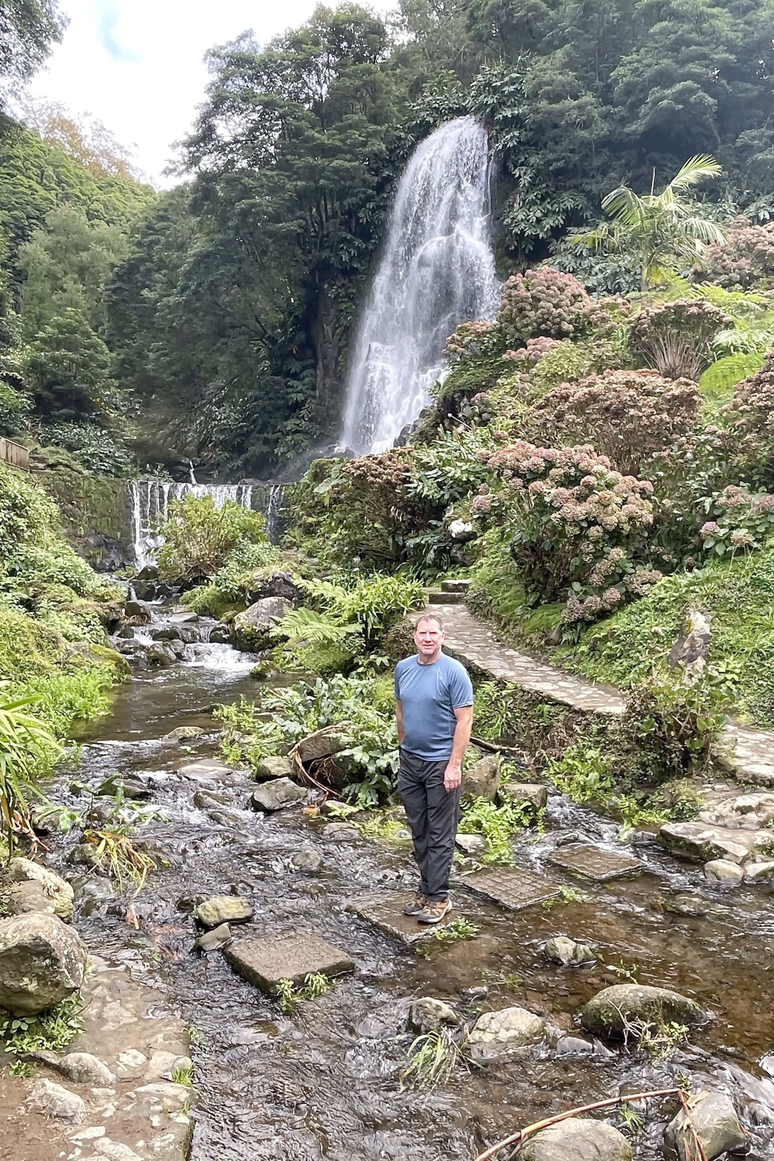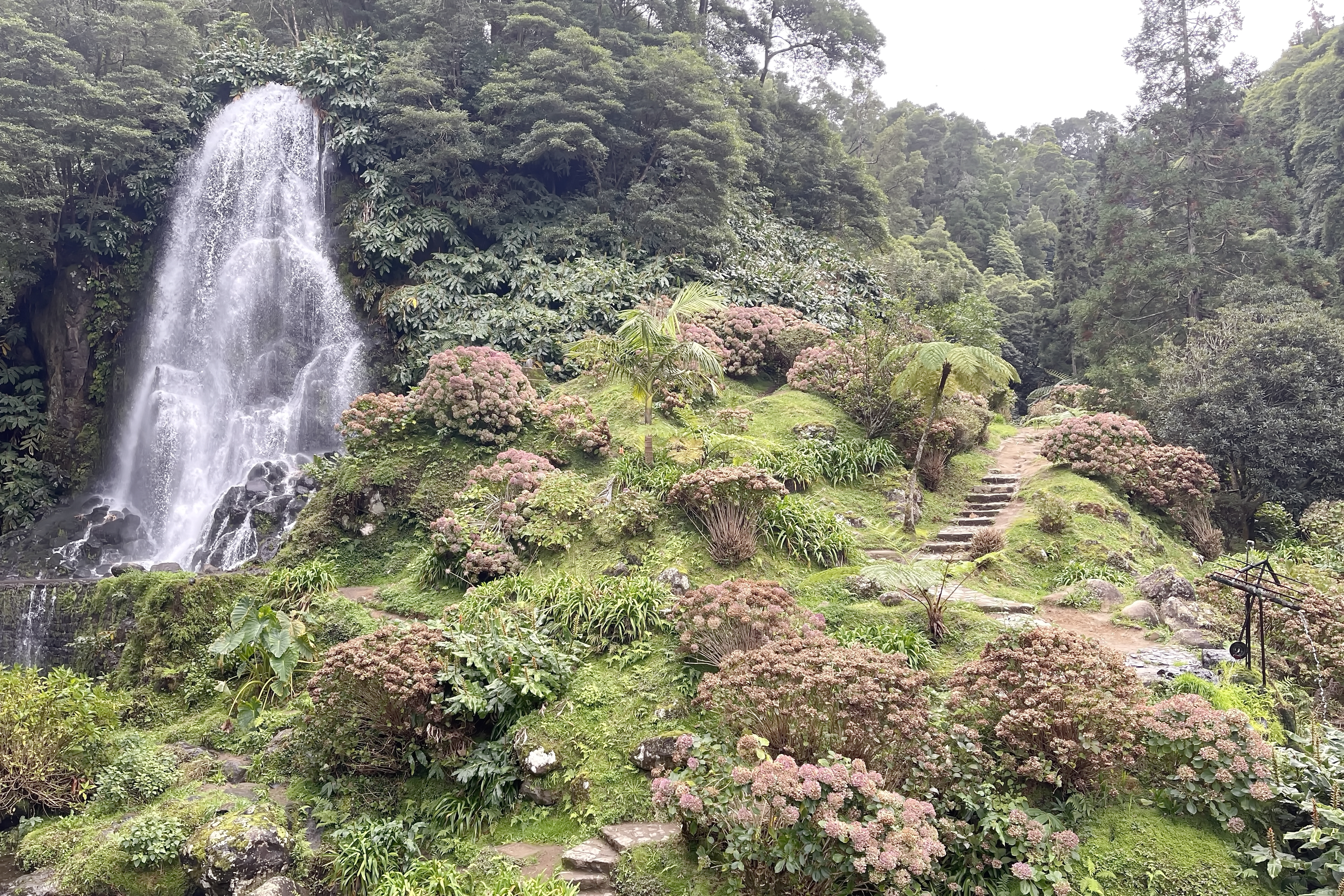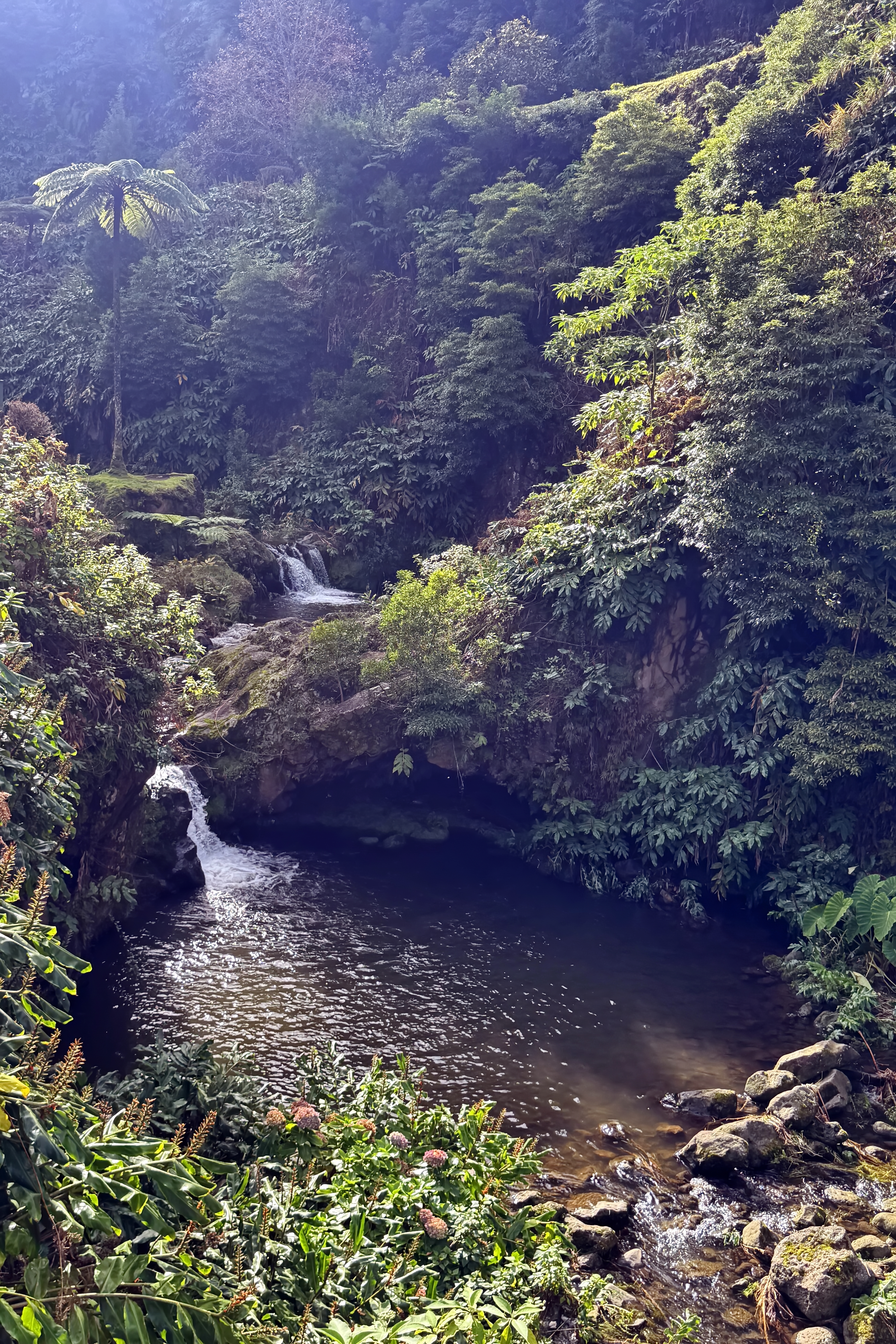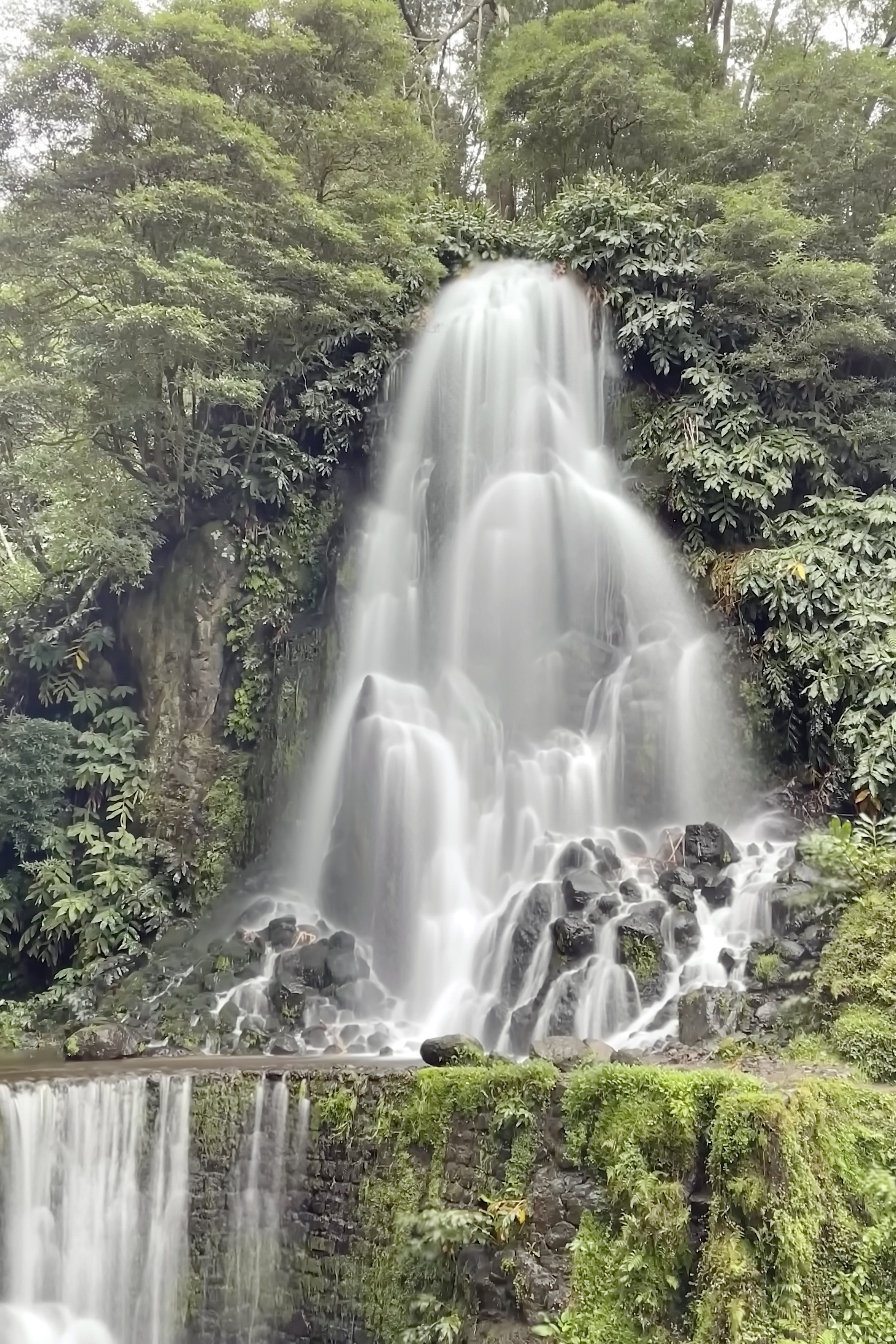 Tucked into the verdant northeast corner of Sao Miguel, the Natural Park of Ribeira dos Caldeiroes felt like stepping into a living postcard. From the moment we arrived, the air was filled with the sound of rushing water and birds hidden somewhere high in the canopy. Waterfalls tumbled through ancient forests, historic watermills stood quietly among the trees, and the lush vegetation had a wild, almost primeval energy that made the outside world fade away.