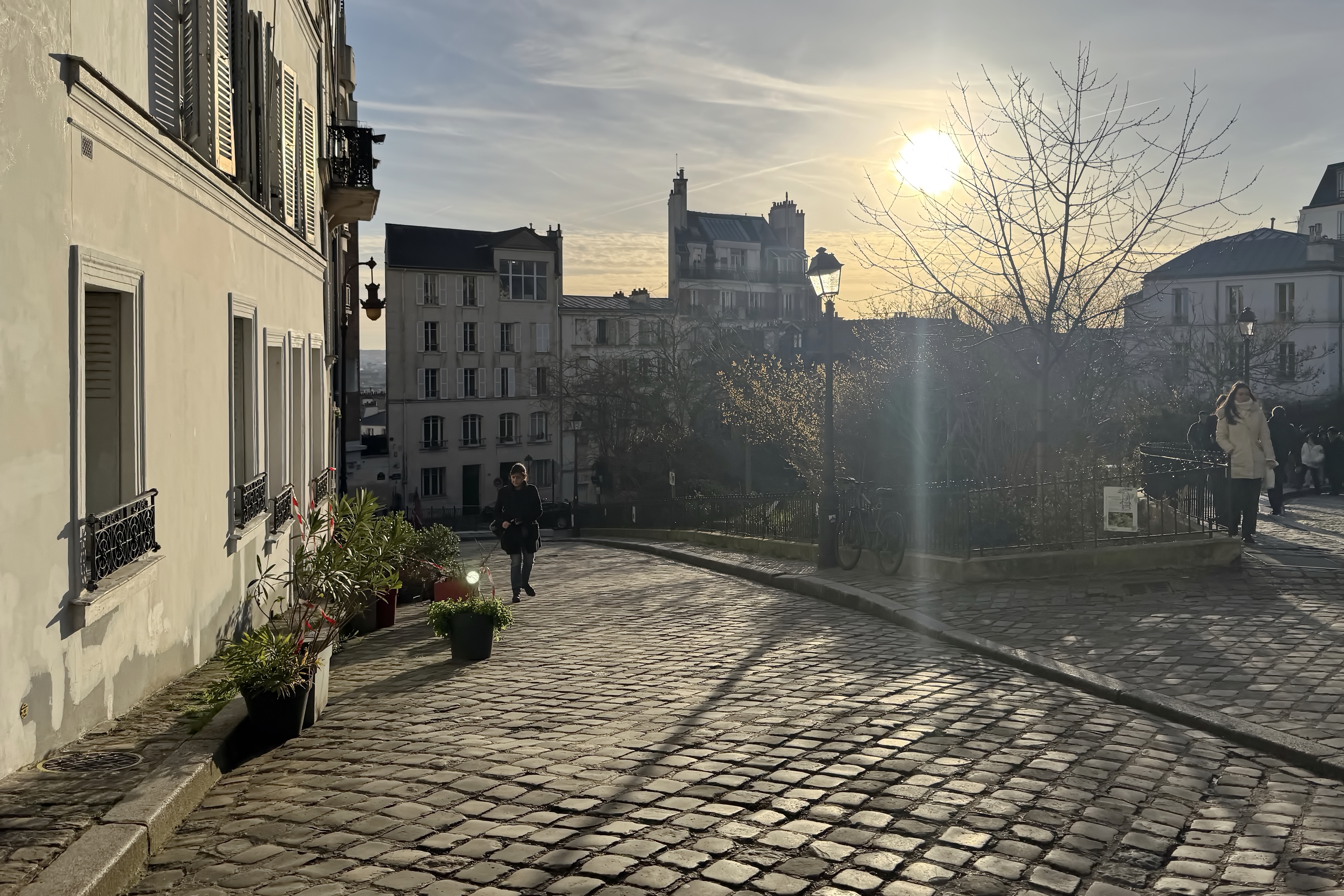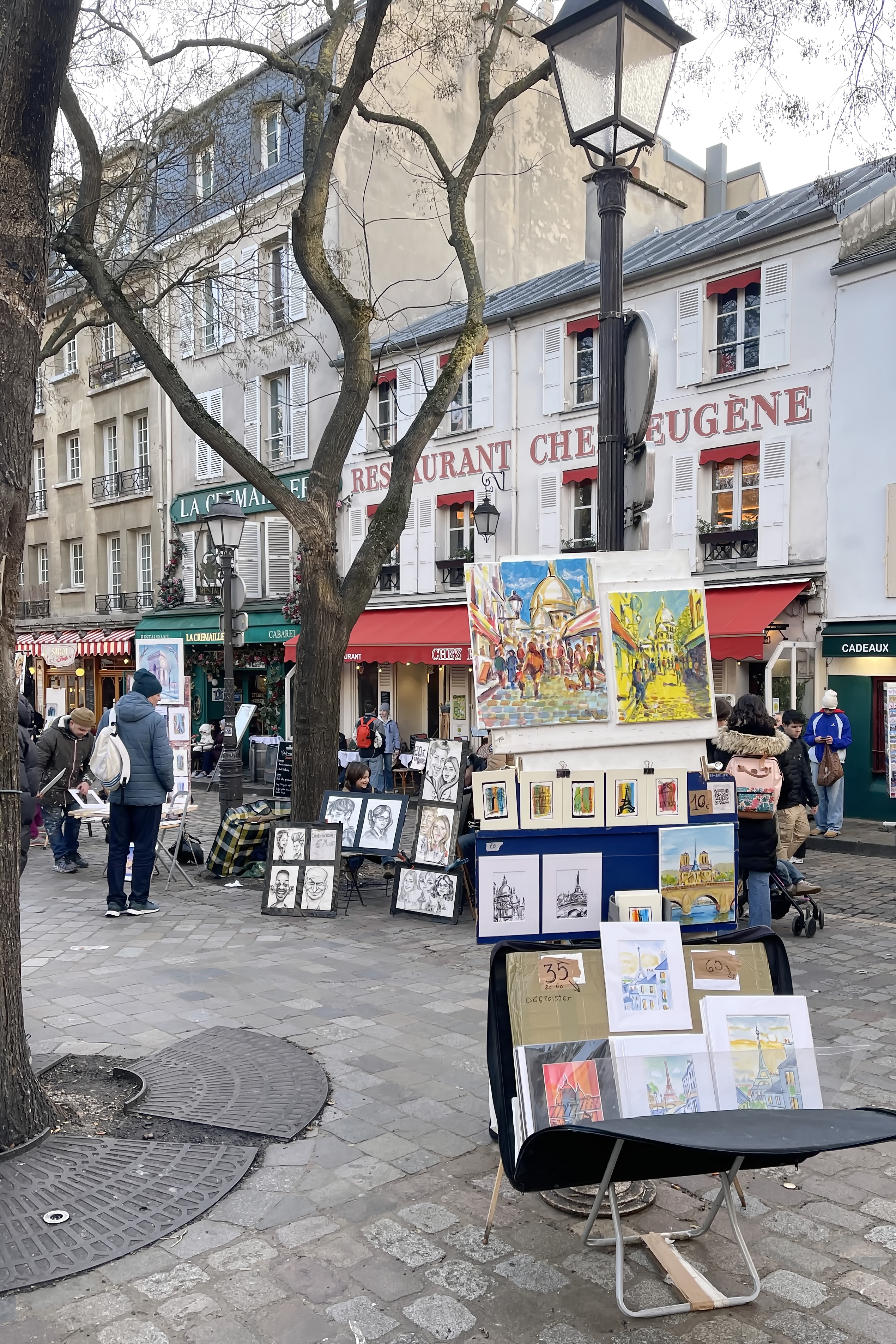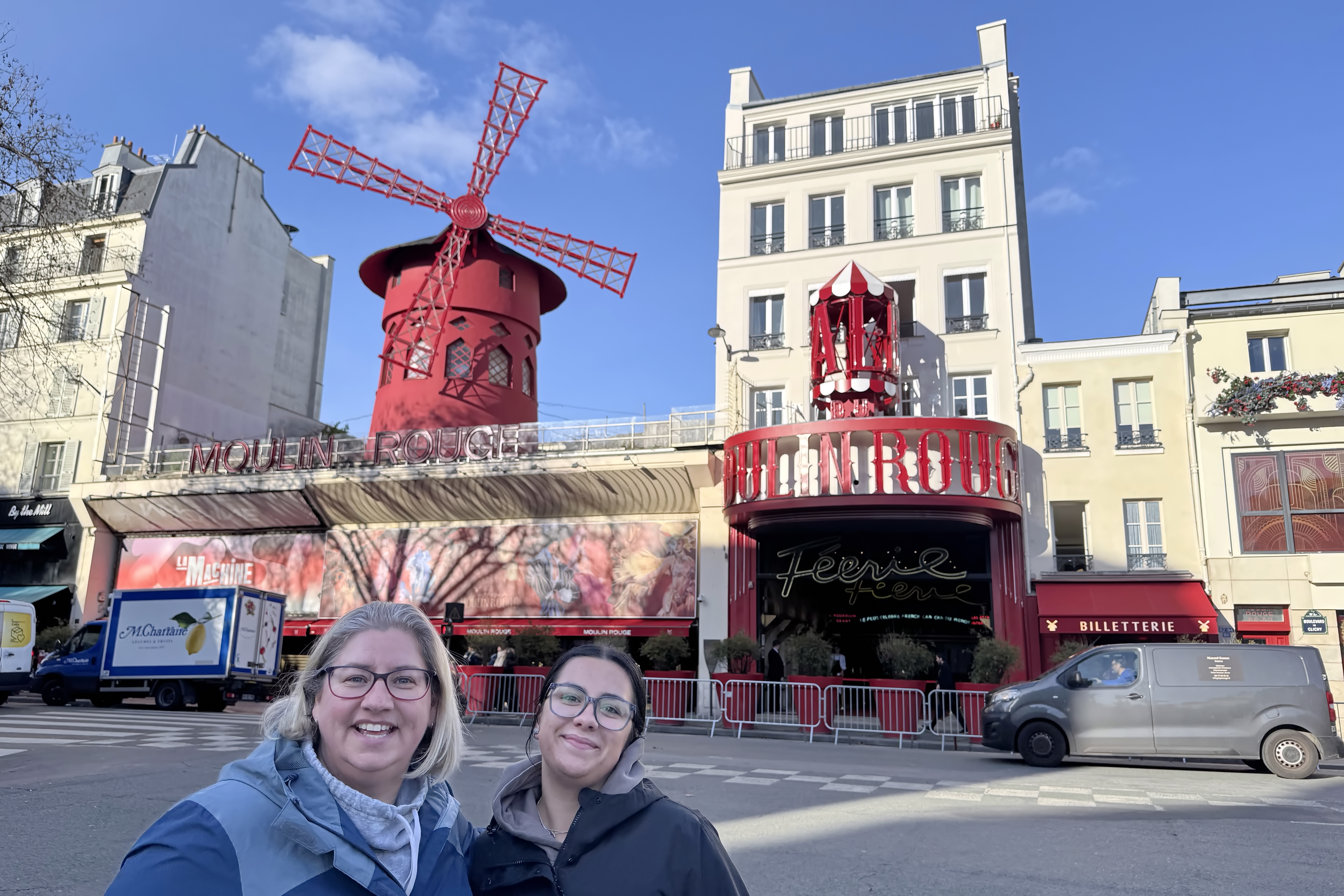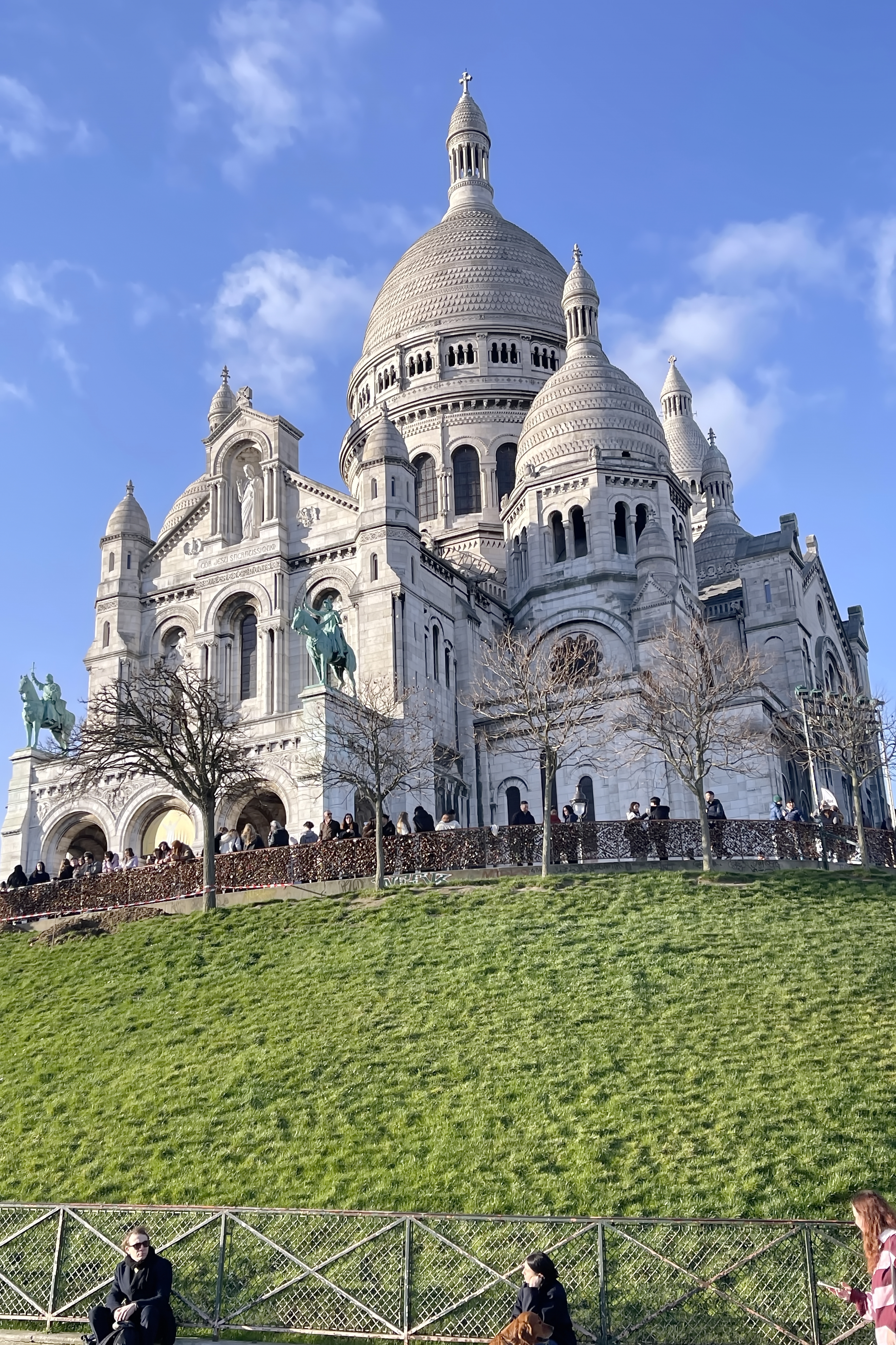 Our first afternoon in Paris felt exactly how a first day in Paris should feel—slightly dreamy and just a little surreal. We set off on foot, passing the iconic Moulin Rouge with its famous red windmill turning above the boulevard, before beginning the steady climb toward Montmartre. Once a bohemian village and long a haven for artists before being officially annexed to the city in 1860, it still feels perched slightly apart from the Paris below. High on the butte, the brilliant white domes of Sacré-Cœur rose against the sky, and from its steps the rooftops seemed to stretch endlessly in every direction. For a quiet moment, we simply stood there together, taking it all in—the view, the light, and the realization that we were really here.