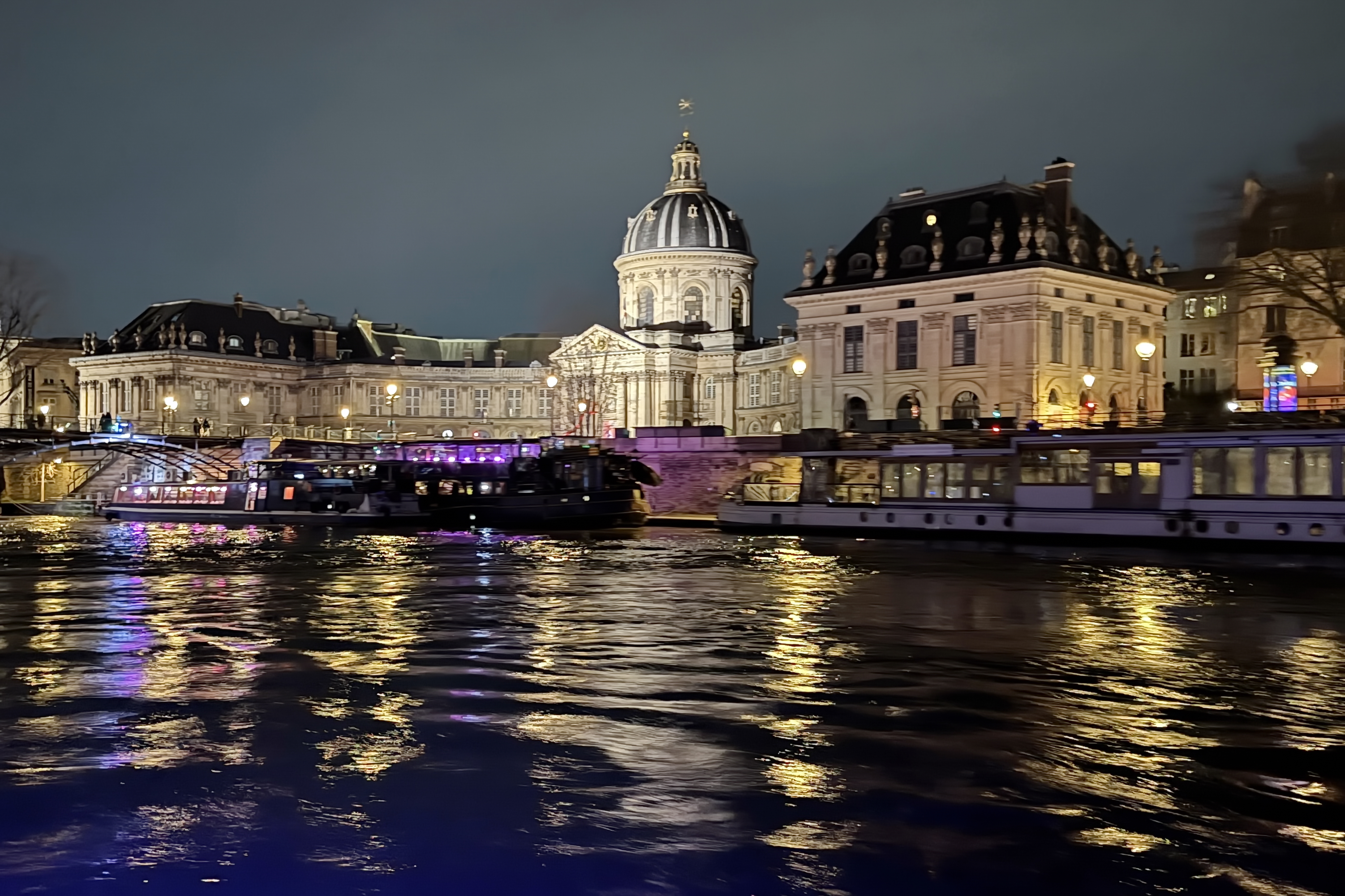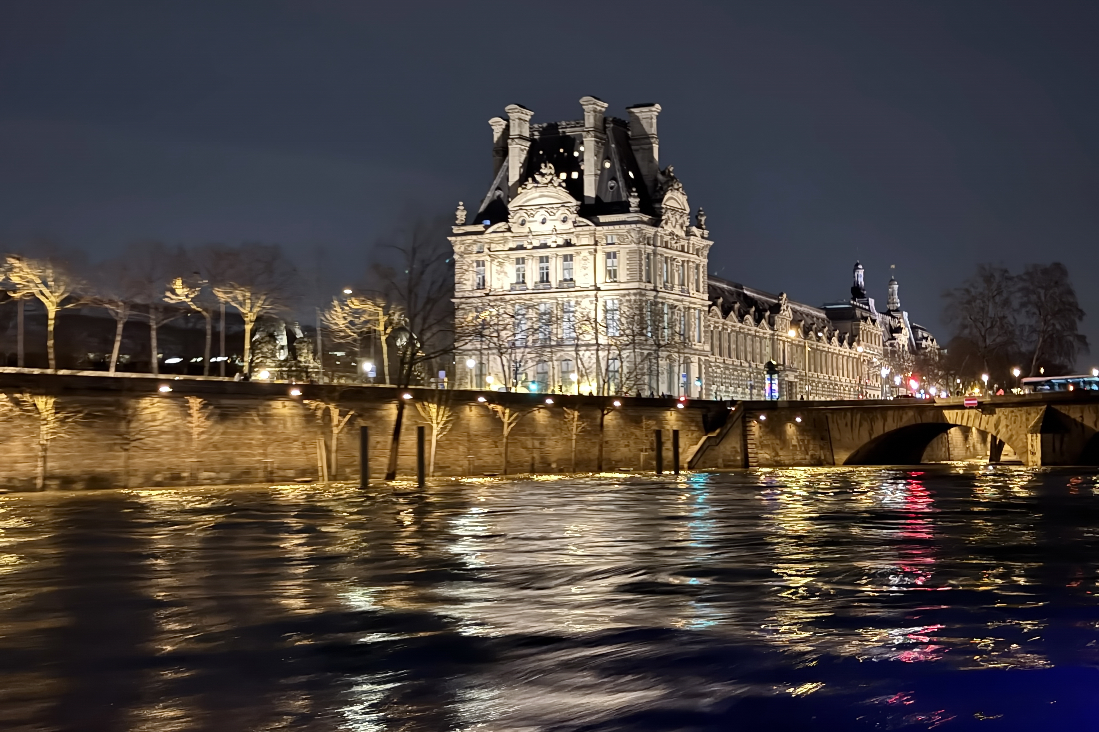 After a break for supper, we set off in search of the river for an evening cruise along the Seine. It had been raining in Paris for days before our arrival, and the water was swollen and muddy, pressing high against the embankments. Because of the elevated levels, our route was slightly modified, and the graceful silhouette of Notre-Dame Cathedral would have to wait for another day. Still, there was something undeniably magical about drifting along the shimmering river at dusk—bridges arching overhead, historic façades glowing in the soft evening light, and the city skyline revealing itself from the water. And then it happened—the Eiffel Tower lit up and began to sparkle against the darkening sky. Of course, watching from a distance wasn’t enough, and after disembarking we walked all the way to the tower afterward, craning our necks to take it in up close, because some moments deserve to be experienced twice.