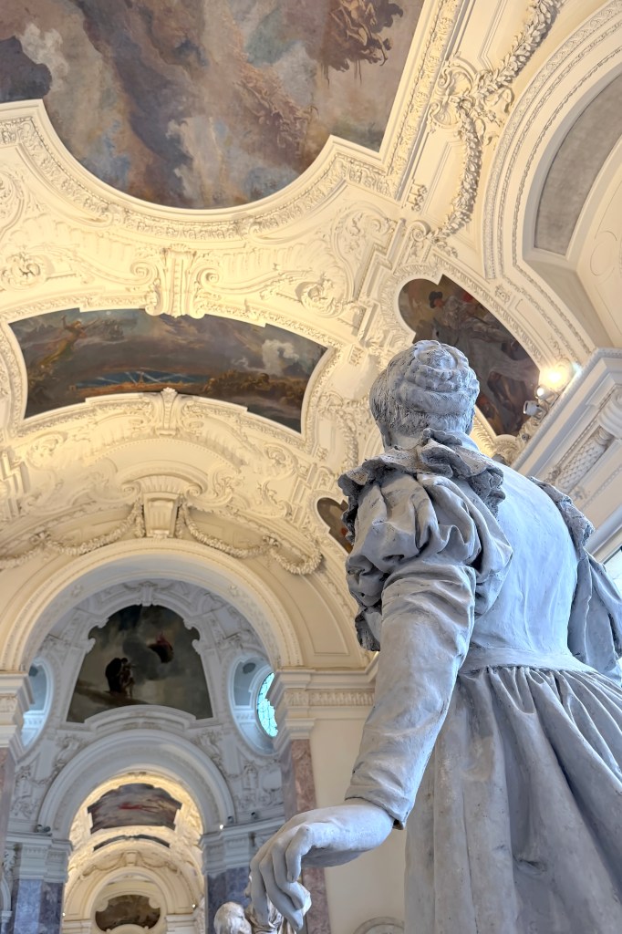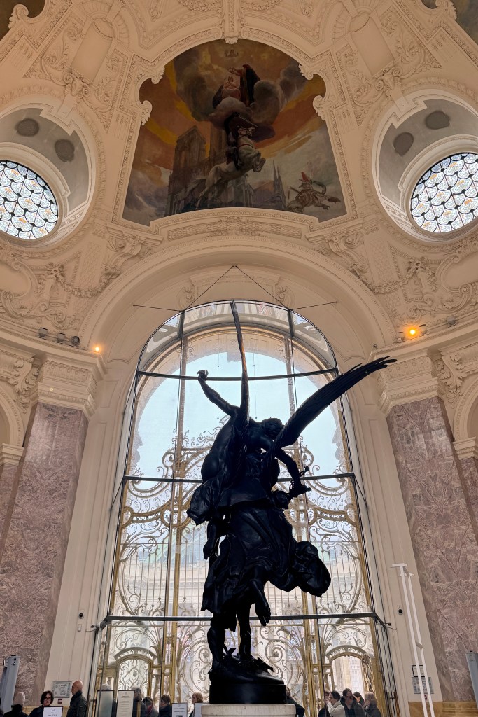 The spectacular Pont Alexandre III carried us toward the Petit Palais just as the clouds turned moody and the first determined raindrops began to fall. Seeking refuge (and perhaps a little culture), we stepped inside the ornate museum, trading umbrellas and puddles for marble floors and hushed galleries furnished with elaborate sculptures and works of art. There was something wonderfully comforting about lingering there—waiting out the rain while wandering past masterpieces by the likes of Auguste Rodin and Claude Monet. It felt like the most Parisian way possible to spend a rainy morning.