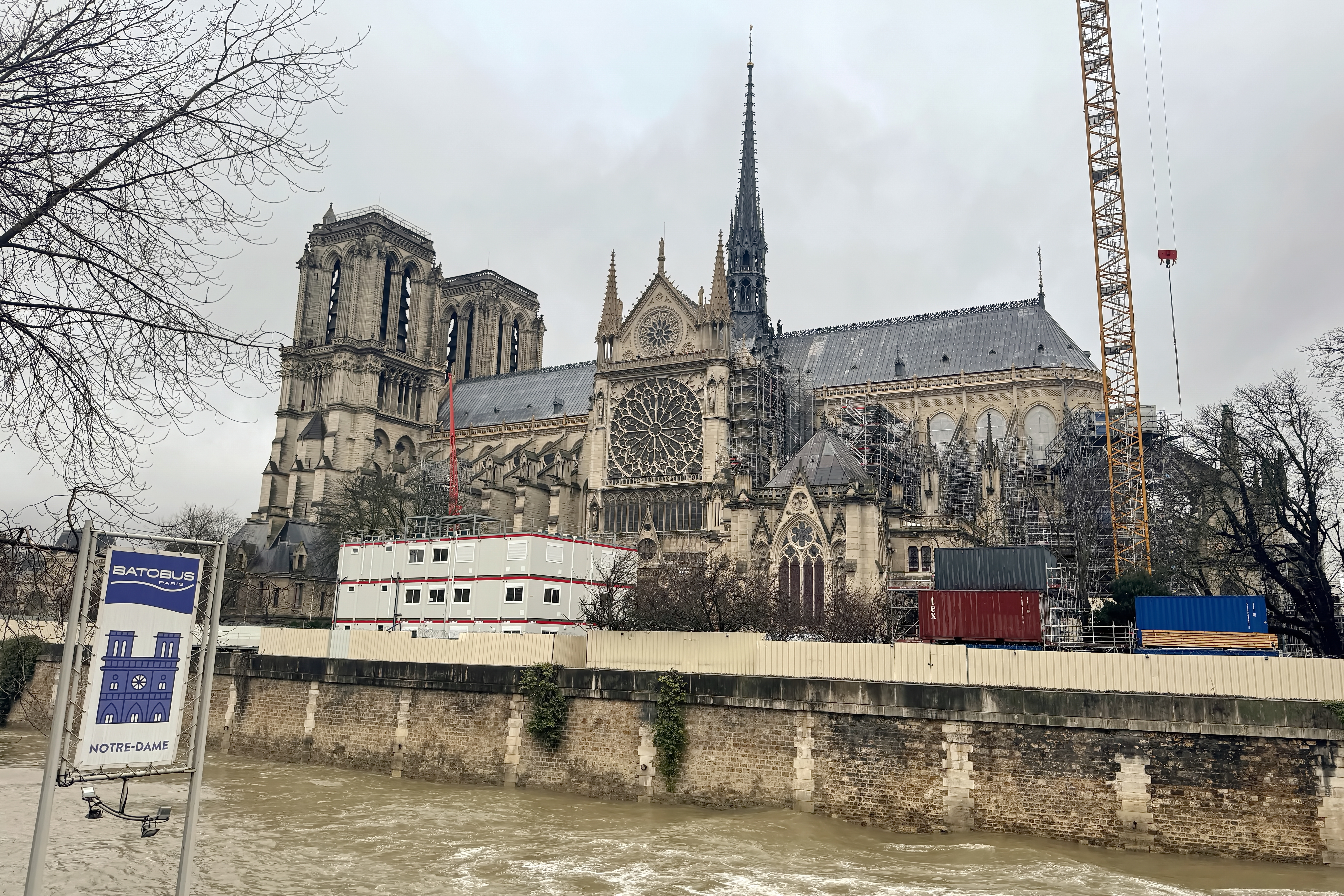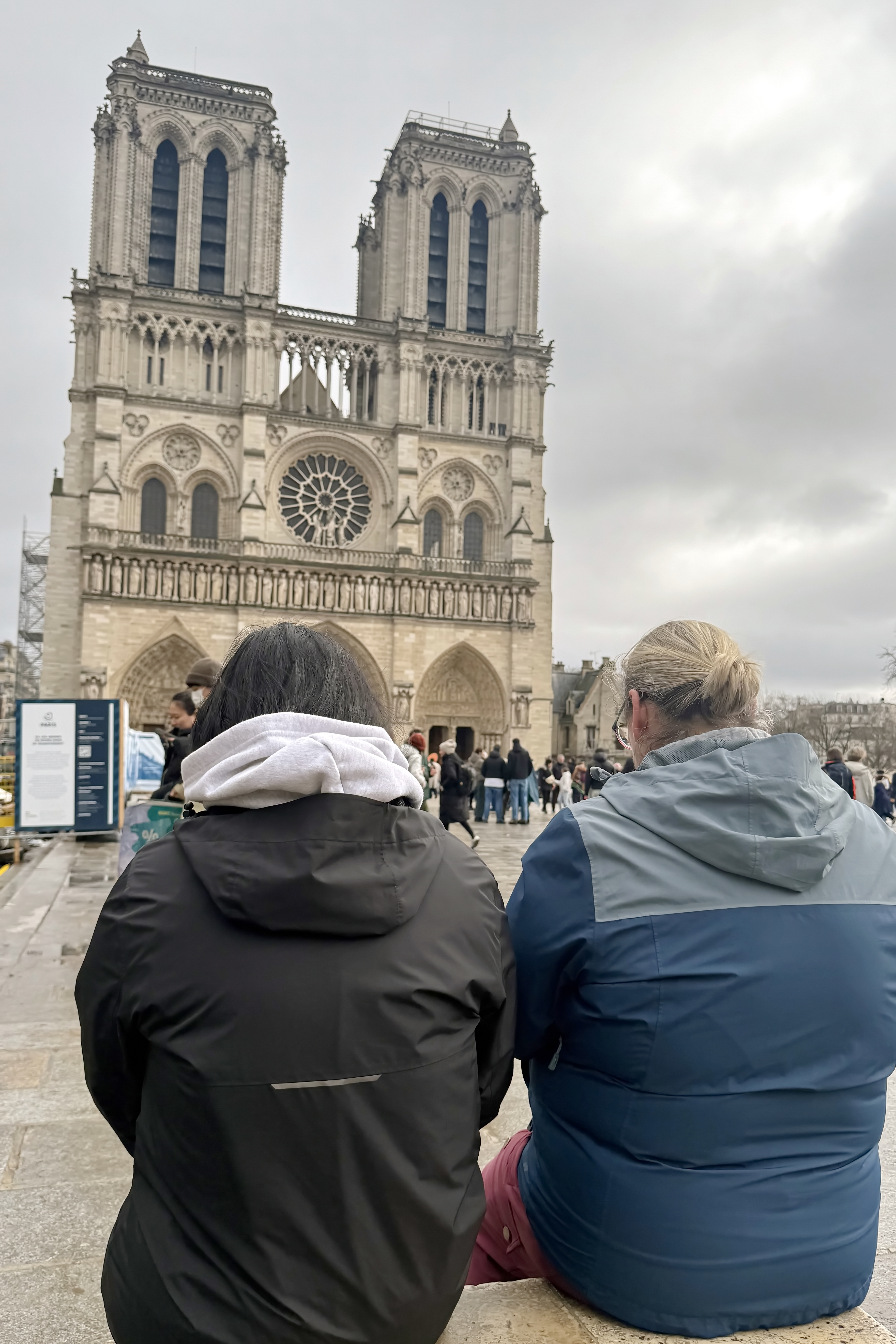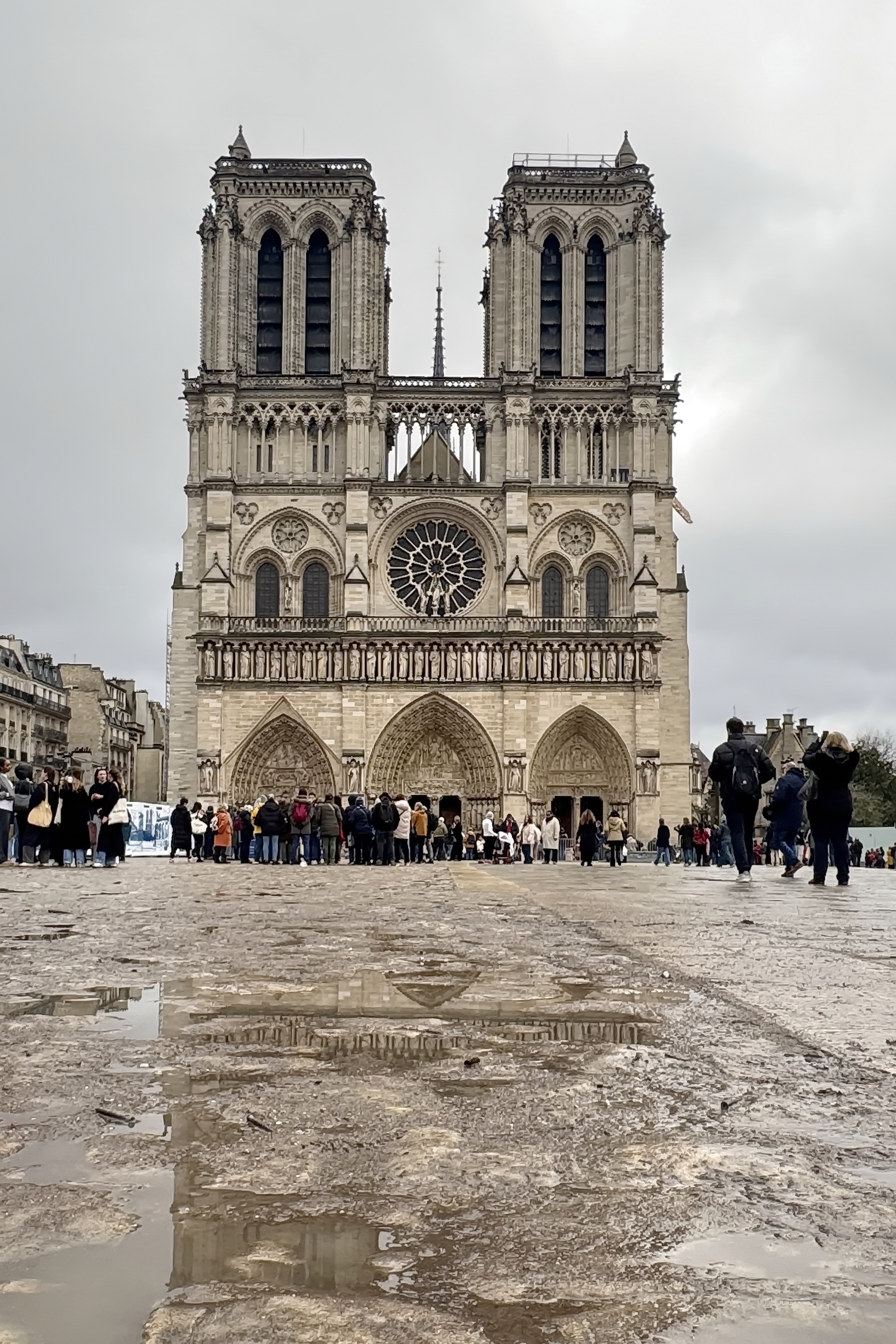 Day three belonged entirely to Notre Dame. The rain was still falling persistently, so we did what travellers do and bought souvenir umbrellas from a nearby tourist shop. Slightly overpriced and questionably sturdy, they felt like a very Paris solution to a very Paris problem. Then we set off, weaving through the narrow streets of Ile Saint-Louis and Ile de la Cite, the Seine sliding past us on either side. From the riverbank, we could see the ongoing restoration work, scaffolding still hugging parts of Notre-Dame Cathedral—a quiet reminder of both fragility and resilience.