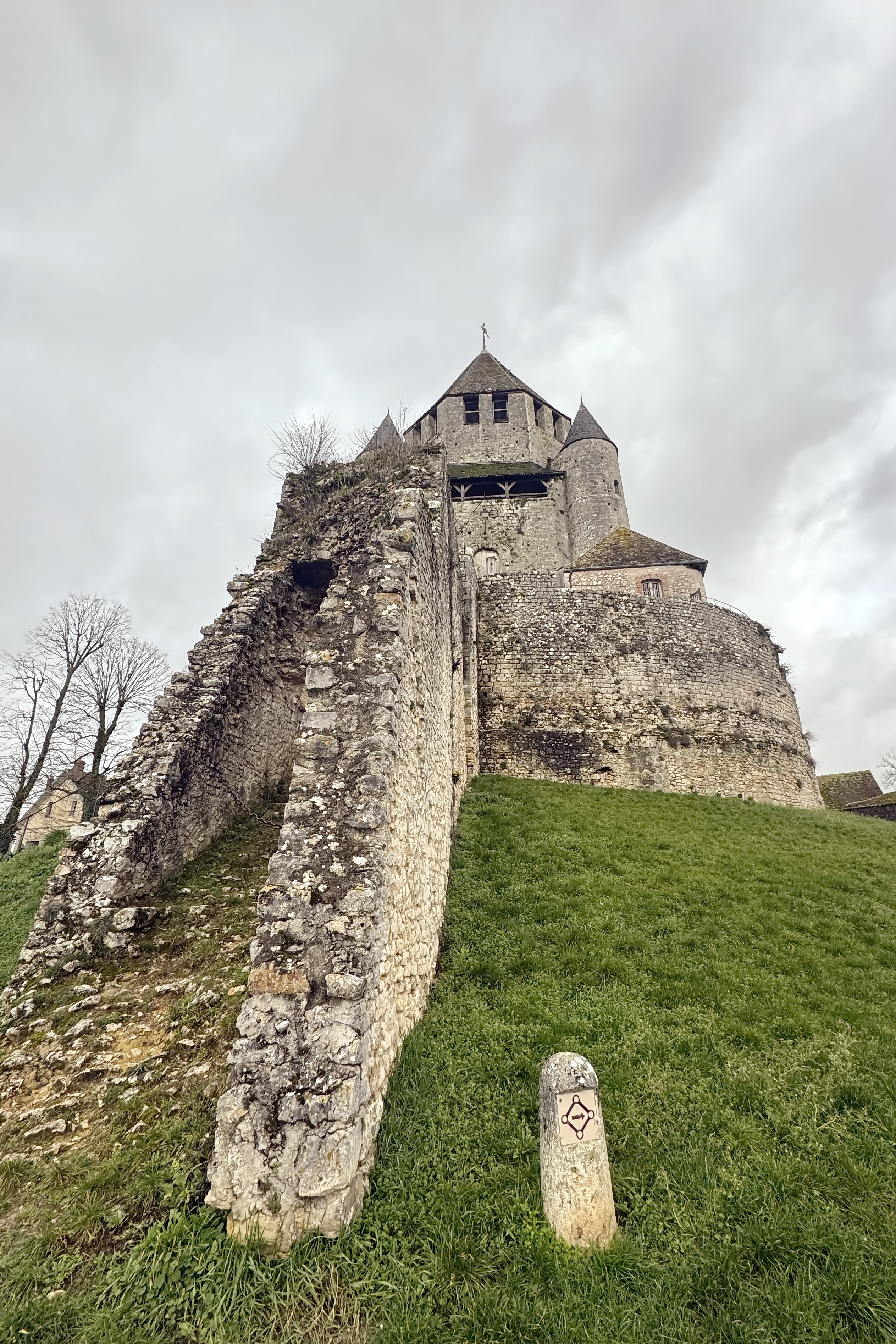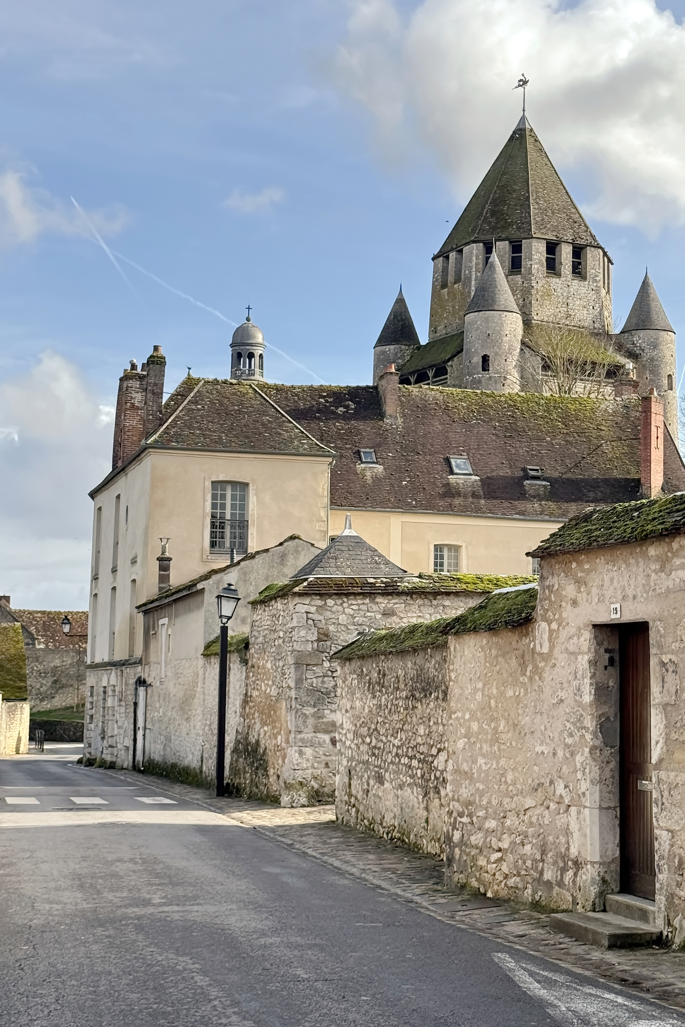 But it was when we began climbing uphill that Provins truly revealed itself. The shift felt almost theatrical. With each step, the streets narrowed, the stone seemed older, more worn, more storied—and then suddenly, we were standing before medieval walls. A remarkably well-preserved gate marked what had once been a defensive boundary, its heavy stone presence a quiet reminder that this peaceful hilltop was once a fortified stronghold. Running our hands along the cool rock, it wasn’t hard to imagine watchmen scanning the countryside centuries ago. Portions of the original ramparts still trace the edge of the hill, and walking beside them, with open views stretching out below, we felt suspended somewhere between past and present.
