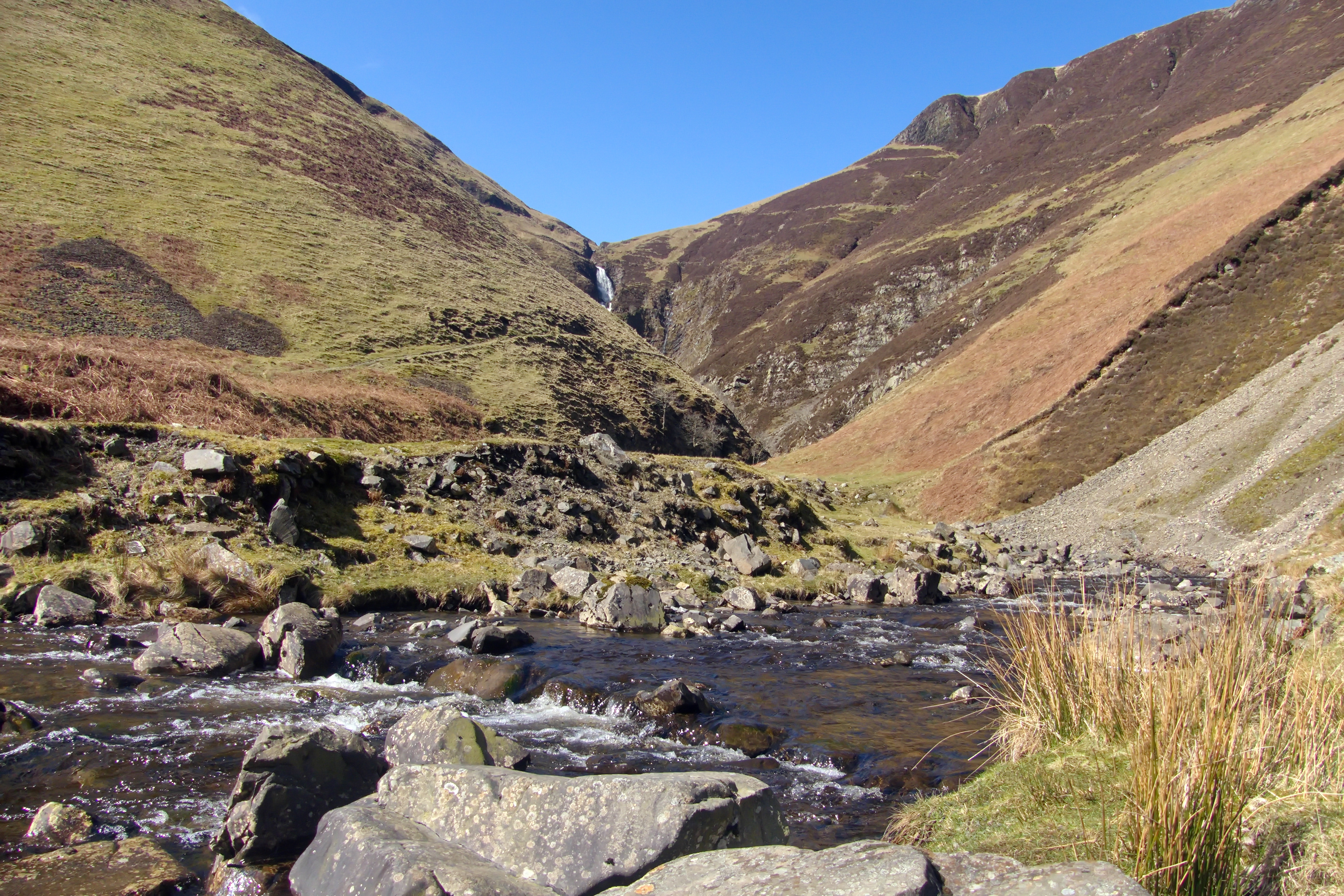 Our walk to Loch Skeen, following the Tail Burn and the cascading Grey Mare’s Tail waterfall near Moffat in Dumfries and Galloway, began at a place that immediately made us pause—the Trail Burn Fort, more commonly known as the Giant’s Grave.