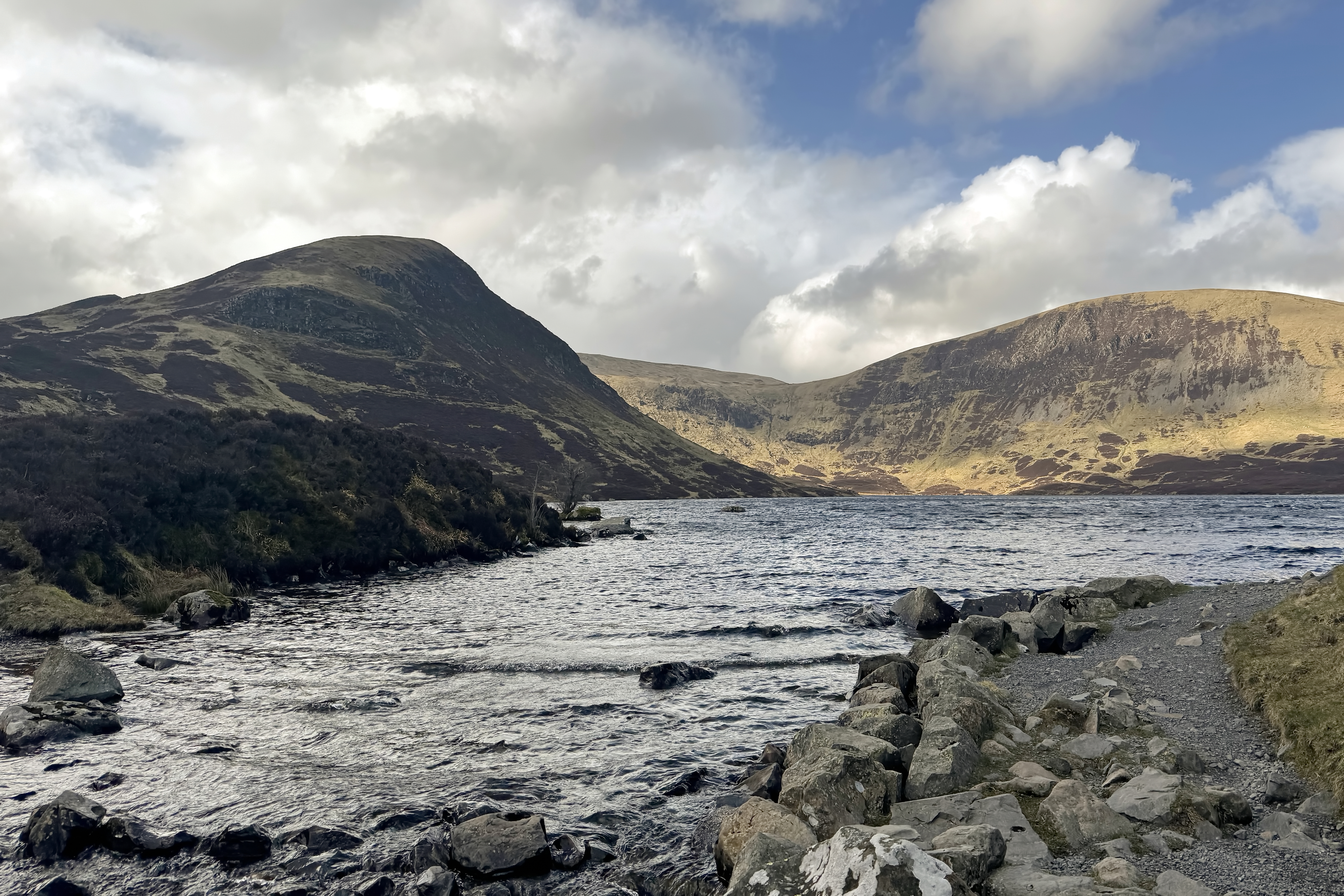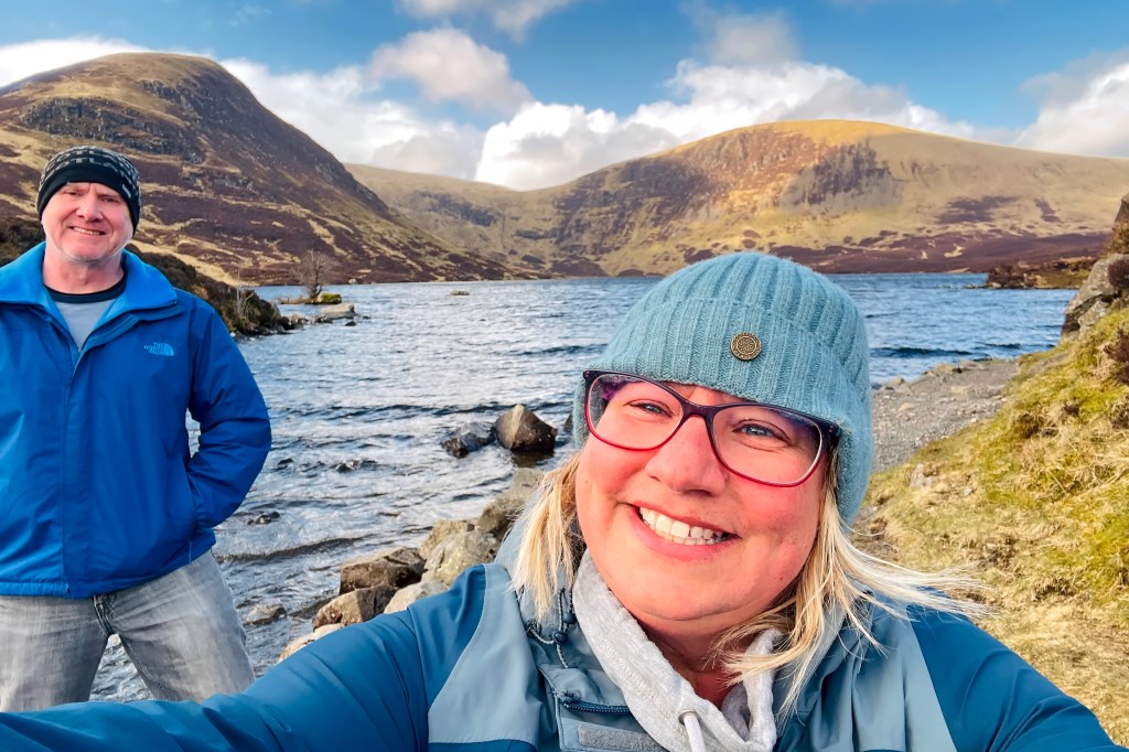 And then, almost suddenly, we were there. Loch Skeen sits like a secret at the top of it all—tucked into a wide, open bowl above the falls. It’s still and dark, reflecting the sky in a way that makes it feel deeper than it is. Surrounded by rolling hills and scattered rock, it carries a kind of quiet that settles over you. Standing there, it’s easy to believe this place hasn’t changed much in centuries—windswept, rugged, and quietly powerful.