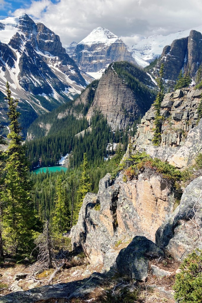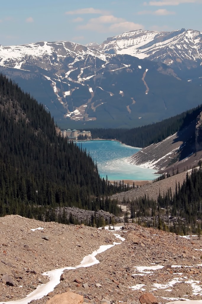 Leading away from the iconic Fairmont Chateau Lake Louise Hotel, the Plain of the 6 Glaciers trail meanders along the full length of the lakeshore before winding up the valley at the opposite end of the lake towards the eponymous Plain of the 6 Glaciers Teahouse, set in a stunning natural mountain amphitheater. Our hike was too early in the season for the Teahouse to be open for a well-deserved break, but upon reaching our destination, the view of the glaciers nestled between the towering peaks of Mount Lefroy and Mount Victoria was awe-inspiring. On the return route back, this trail then connects with the Highline Trail, which contours at a higher elevation around Lake Louise towards the Lake Agnes Teahouse and on towards the peaks of Big Beehive and Little Beehive with stunning views at every turn.