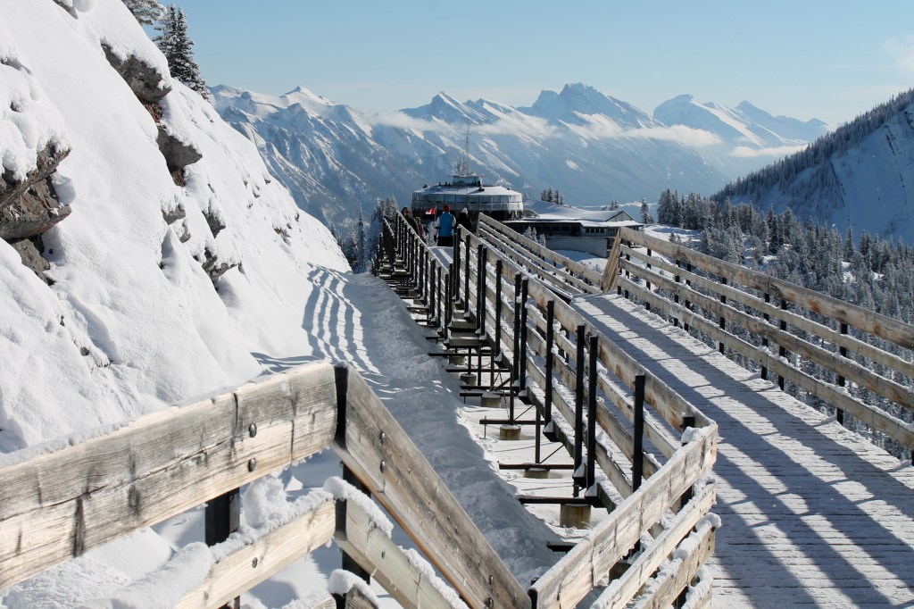 The Sulphur Mountain Boardwalk is a scenic, well-maintained pathway on the summit of Sulphur Mountain, accessible by the Banff Gondola. Connecting the Upper Gondola Terminal to the Cosmic Ray Station and Sanson’s Peak, the boardwalk offers a safe and easy way to explore the summit area with breathtaking panoramic views of the snow-covered peaks in Winter.