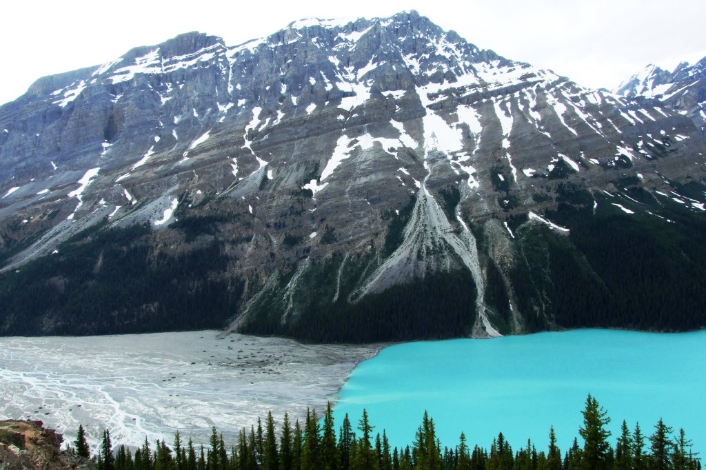 Bow Summit is the highest point on this scenic drive and is the access point for the trail to the Peyto Lake viewpoint. During the summer, significant amounts of glacial rock flour flow into the lake, and these suspended rock particles give the lake a bright, turquoise colour. Most people head for the constructed observation deck and jostle for position to get the best view from the platform, not knowing that there is a much better and quieter viewpoint less than 10 minutes away. Stumbling across this lesser-known and less-maintained trail by complete accident resulted in having the secret second viewpoint alone…well, except for a hoary marmot perched on a rock overlooking this iconic view.