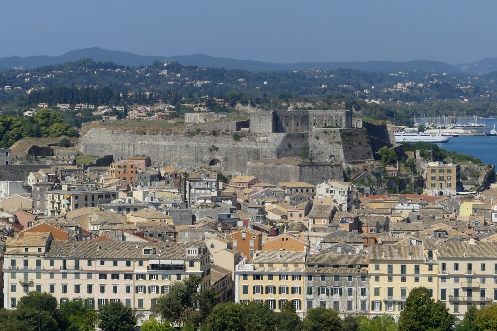 Despite its name, the New Fortress of Corfu isn’t exactly new, it was constructed by the Venetians in the late 1500s, just after the Old Fortress was completed. Built high on the hill of St. Mark to defend the growing town, the New Fortress is a massive stone complex of walls, tunnels, and lookout points that still dominates the skyline above the harbor.