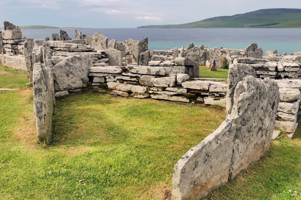 The view out across Eynhallow Sound is stunning. Peaceful now. But you can picture longboats on the horizon, smoke from the hearths curling into the wind, voices calling across the stone.