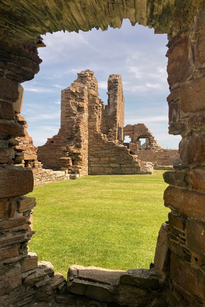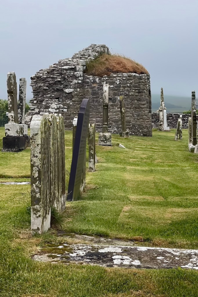 And here, tangled in the quiet, is a piece of saga. The Orkneyinga Saga tells of Earl Haakon, who built this church as penance after a murder during a Yule feast at the nearby Earl’s Bu. Politics, betrayal, and redemption — the old Norse way. It’s strange, standing in this soft green field, to feel the weight of that story settle around you.