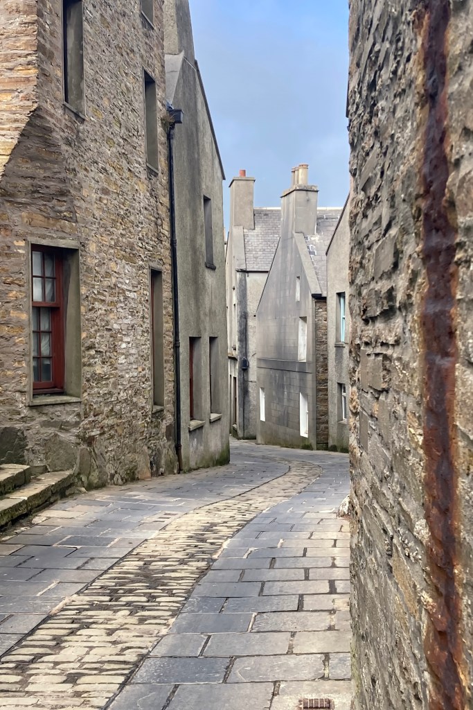 Oh, Stromness. You don’t stroll through this town — you wind, you wander, you weave. The streets here don’t apologize for being narrow. They were built for feet, hooves, maybe a cart or two. Definitely not your average motorhome (sorry, Benny). These are lanes that have seen centuries, and they carry it well.