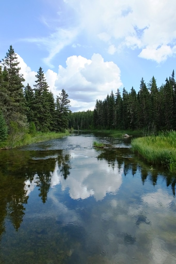 One river leads into Waskesiu Lake, and the other flows out. The Waskesiu River is near the marina, and the parking lot always seems to have at least one vehicle, no matter the time of day. The flat boardwalk is a family-friendly, pleasant riverside trail where colours of the landscape seem especially vibrant. By contrast, the railway portage trail alongside the Kingsmere River winds slowly through the forest, offering mere glimpses of the water flowing nearby.